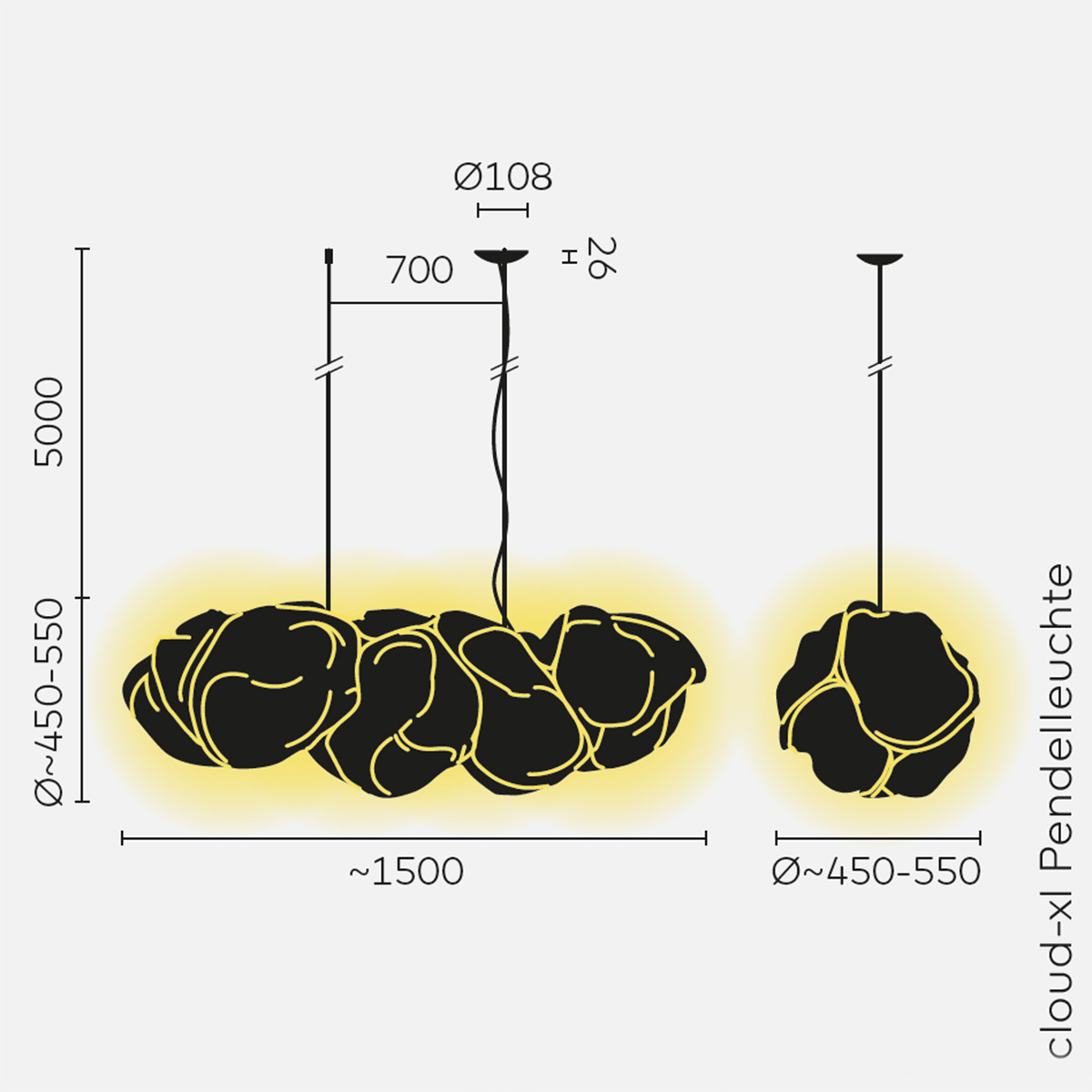 • Opulente Pendellampe in Form einer Schönwetterwolke