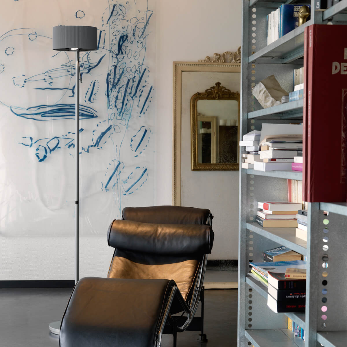 Hochwertige Materialien und eine klare, reduzierte Formensprache verleihen der Belux Diogenes Stehleuchte ihre markante Eleganz. Der Sockel und der aus lackiertem Aluminiumdruckguss gefertigte Schirm sind in vier ansprechenden Tönen (Graphitschwarz, Goldgrau, Bronze und Weiß) erhältlich und präsentieren sich in einer einheitlichen Farbgestaltung. Damit fügt sich die Stehlampe nahtlos in unterschiedlichste Einrichtungsstile ein, sei es im privaten Wohnbereich, im Homeoffice oder in repräsentativen Büros und Lobbys.