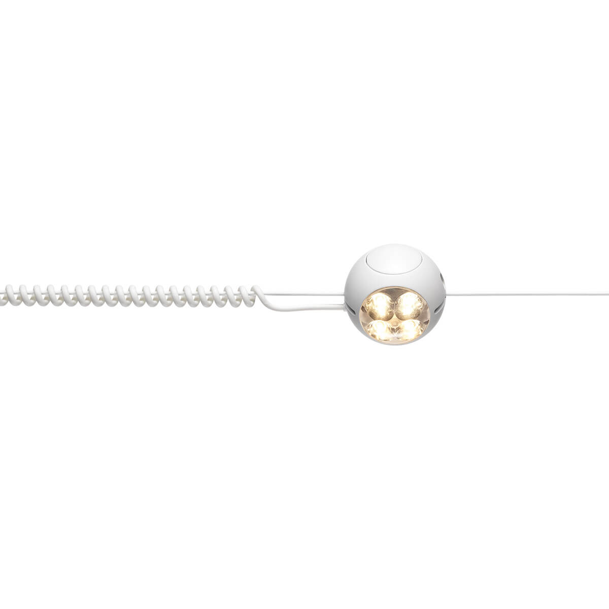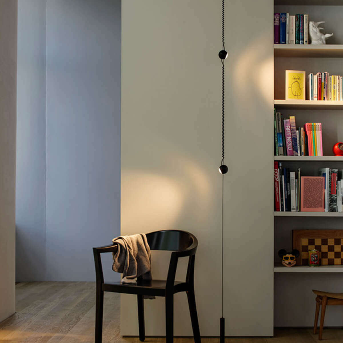 Das Hello Seilsystem, entworfen vom renommierten Designer Stephan Hürlemann, bietet eine flexible Beleuchtungslösung für Räume, in denen konventionelle Lichtinstallationen an ihre Grenzen stoßen. Ideal für Altbauten mit empfindlichen Decken oder Räume, in denen Anschlüsse nicht optimal platziert sind, lässt sich der Hello Spot einfach an einem Spannseil befestigen, das nur eine einzige Stromquelle benötigt. Ein Spiralkabel, das sich um das Seil windet, leitet den Strom effizient von Leuchte zu Leuchte weiter und verleiht dem System einen klaren, minimalistischen Look.