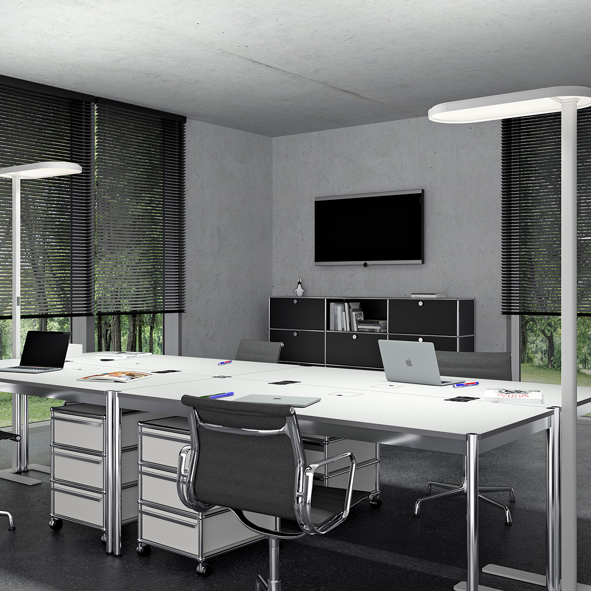 - Stehlampe für eine kraftvolle, äußerst gleichmäßige Arbeitsplatzbeleuchtung