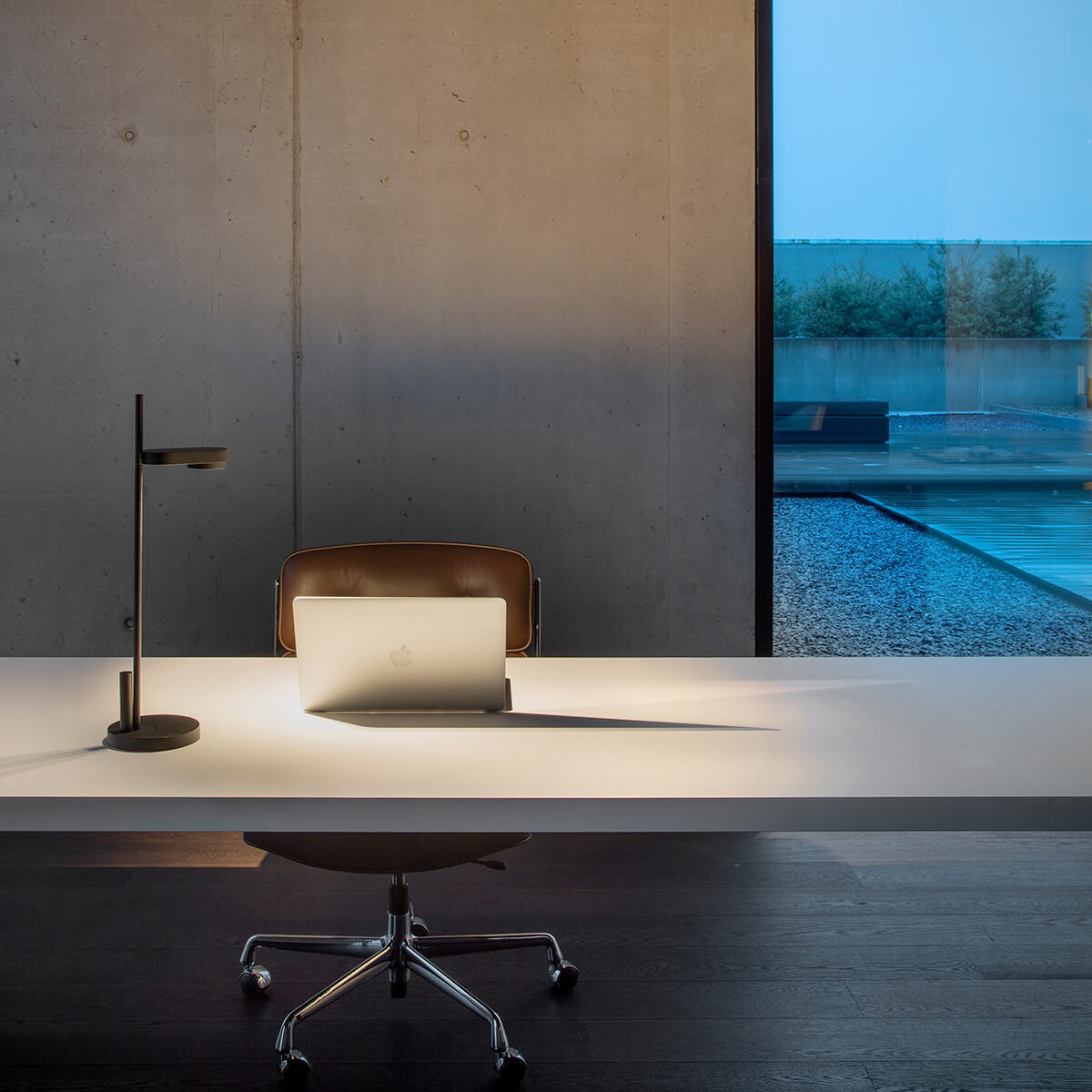 Die asymmetrische Lichtverteilung der Tischleuchte sorgt dafür, dass die Arbeitsfläche breitflächig, gleichmäßig und blendfrei ausgeleuchtet wird – ideal für lange Tage am Bildschirm, kreative Prozesse oder fokussiertes Lesen. Besonders clever: Der Lichtaustrittswinkel lässt sich über einen Drehmechanismus am Kopf feinjustieren, um eine eventuelle Blendung im Sitzen zu vermeiden. So passt sich die Leuchte individuell an Ihre Sitzposition und Arbeitsweise an.