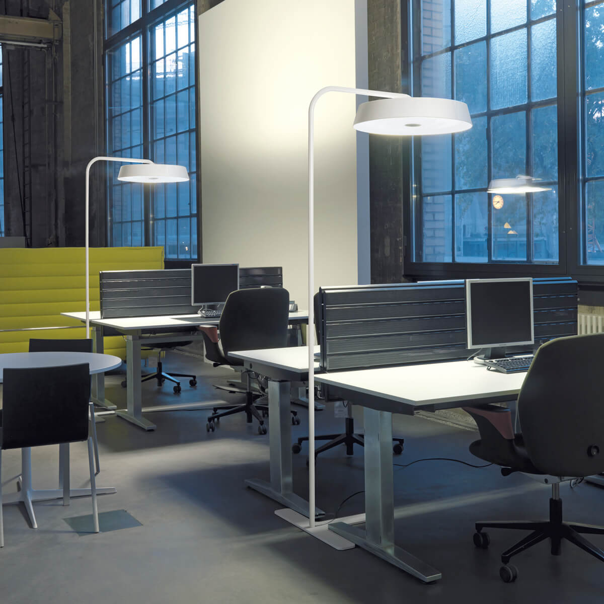 • Elegante Bogenlampe für eine homogene Arbeitsplatzbeleuchtung