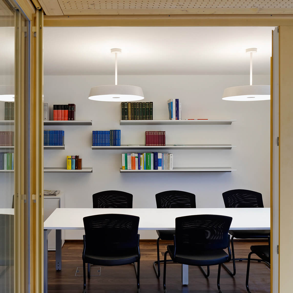 Dank einer ausgewogenen Lichtverteilung mit 27 % direktem und 73 % indirektem Lichtanteil erzeugt die Pendellampe ein sanftes, gleichmäßiges Raumlicht, das blendfrei und augenschonend ist. Der UGR-Wert unter 19 reduziert störende Reflexionen und ermöglicht ein angenehmes Arbeiten – ideal für Bildschirmarbeitsplätze und Meetingräume.