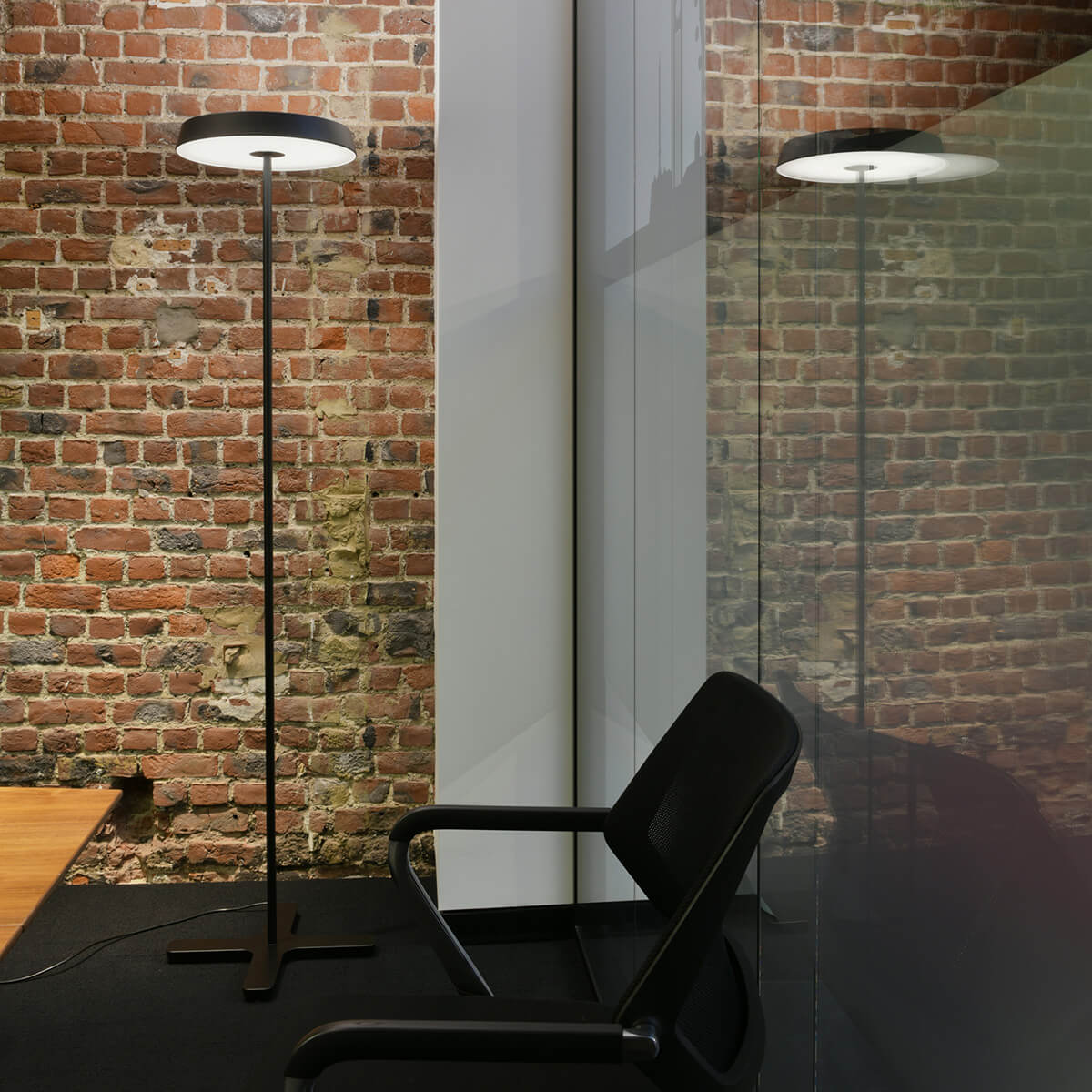 - Stehlampe mit prismatisierten Diffusoren für eine kraftvolle Arbeitsplatzbeleuchtung
