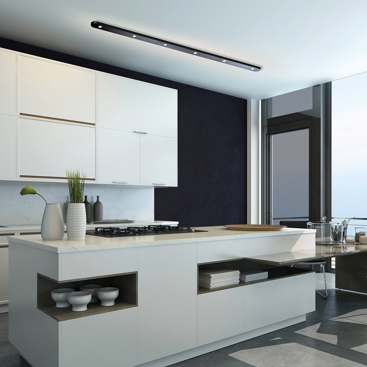 - Schlanke, minimalistische Deckenlampe mit sechs Lichtpunkten