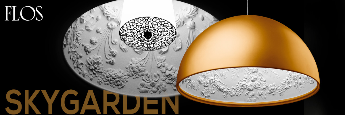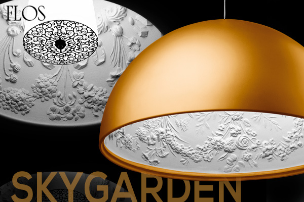 Marcel Wanders entwarf für Flos die Skygarden. In seiner früheren Wohnung faszinierte ihn die Zimmerdecke mit Stuckdekoration. Er bezeichnete sie als persönlichen Himmelsgarten. Darauf verweist die Marke mit dem Namen der Kollektion, deren Ästhetik von Stuckdecken inspiriert ist. Die Produktserie spiegelt gleichzeitig das typische Formenvokabular des niederländischen Designers wider. Er tendiert zu künstlerischen Entwürfen, die verspielt und feminin anmuten.