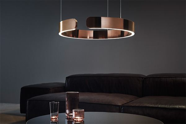 Die Ringleuchten sind keine Lichtspender im üblichen Sinne, sondern Designobjekte, die zur kreativen Lichtgestaltung verführen. Ihre umgesetzte Idee hat wiederum die Kraft, Menschen mit der Beleuchtung emotional zu berühren. Dabei können Sie zum Beispiel von Occhio die Mito sospeso 40 in Rose-Gold und mattiertem Gold mit einem Exemplar kombinieren, das 60 cm misst und im matten Silber veredelt ist.