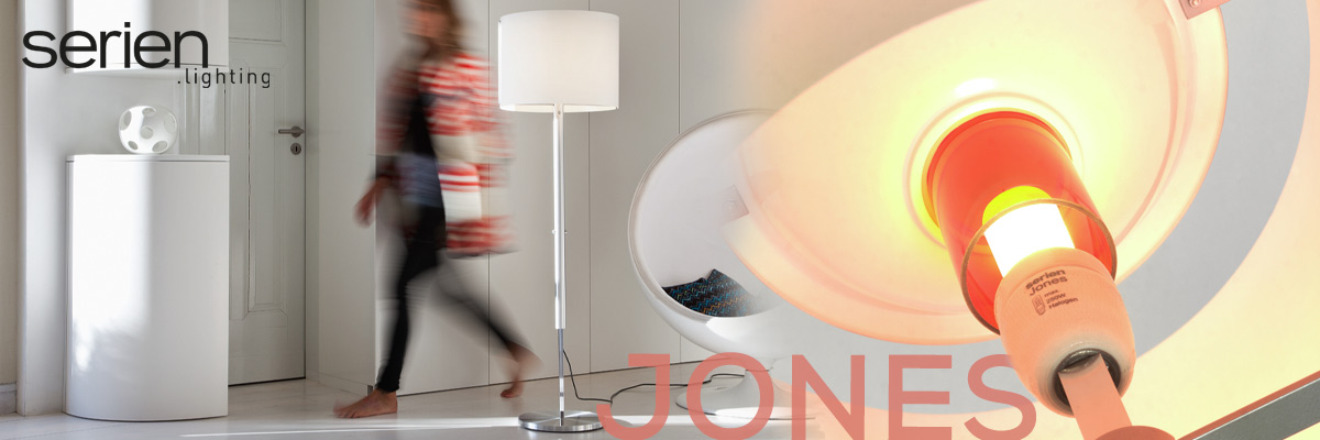 JONES - multiple Lichtfunktionen. Verstellen Sie Jones und Sie verstellen das Licht. Über zwei Knöpfe am Standrohr kann die Leuchte geregelt werden. Verschieben Sie das Rohr leicht nach oben, wird JONES zum Deckenfluter. Verschieben Sie es nach unten wird das Licht seitlich nach unten abgegeben und JONES wird zur Leseleuchte. In der mittleren Position wird das Licht durch den Schirm diffus und farbig abgegeben. Mischpositionen sind natürlich möglich! Die Standleuchte JONES mit einem orangefarbenem, gelbem und blauem Glas geliefert, welche problemlos auswechselbar sind. JONES macht sich hervorragend in Wonzimmern, Schlafzimmer und Büros. Entscheiden Sie welche JONES Ihnen am besten gefällt: JONES oder JONES MASTER und bestellen Sie Ihre Serien.Lighting Standleuchte bei Leuchtenland.com.