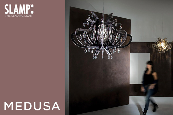 Slamp Leuchtenserie/ Lampe Medusa im Online Shop Leuchtenland.com für Leuchten & Lampen sicher online kaufen. 5 Sterne Online Shop für moderne Design Slamp Leuchten mit Trusted Shop Siegel. Alles begann 1994, als der Italiener Roberto Ziliani, der eigentlich aus der Mode- und Bühnenwelt kam, fasziniert war von der Idee, frische Innovationen auch in die Leuchtenwelt zu tragen. So verschrieb er sich dem Lampendesign. Die Bodenleuchte „Slamp Tube“ avancierte zum Durchbruch und ist der Klassiker des Leuchten-Sortiments. Heute befruchtet die Zusammenarbeit mit internationalen Experten unterschiedlicher Disziplinen, wie Architekten, Designern und Künstlern, die kreative Arbeit. Verführerisch schön wie die sagenhafte Schwester der Gorgonen sind die Leuchten der Serie Medusa. Sie verkörpert eine innovative Art der Beleuchtung designed by Nigel Coates. Mit ihrer elegant geschwungenen Silhouette und den opalisierenden auch farbigen Materialien darf die Pendelleuchte der Serie Medusa als eine reizvolle Neuinterpretation des klassischen Kronleuchters gelten. Ihren aparten Charakter verdankt sie vor allem den 56 Swarovski®-Kristallen, die den Leuchtkörper schmücken. Gleichzeitig gewährleistet das den Leuchtenschirm bildende Material, das von Slamp patentierte Opalflex® und Cristalflex®, eine angenehme Lichtwirkung und überraschende Widerstandsfähigkeit. Lassen Sie sich von Medusa verführen. Ob für Ihren Flur, Ihr Esszimmer, Ihr Wohnzimmer, Ihre Küche, dem Kinderzimmer, dem Arbeitszimmer, oder dem Schlafzimmer, eine Slamp Leuchte/ Lampe eignet sich in all diesen Räumen. Natürlich soll Beleuchtung auch funktionalen Anforderungen entsprechen, sowohl im privaten Umfeld, wie im Büro, in einer Praxis, in Geschäftsräumen. Die Leuchten können mit den benötigten Leuchtmittel der neuesten modernen, energiesparenden Generation Ihrer Wahl in unserem Online Shop Leuchtenland.com ausgestattet werden.