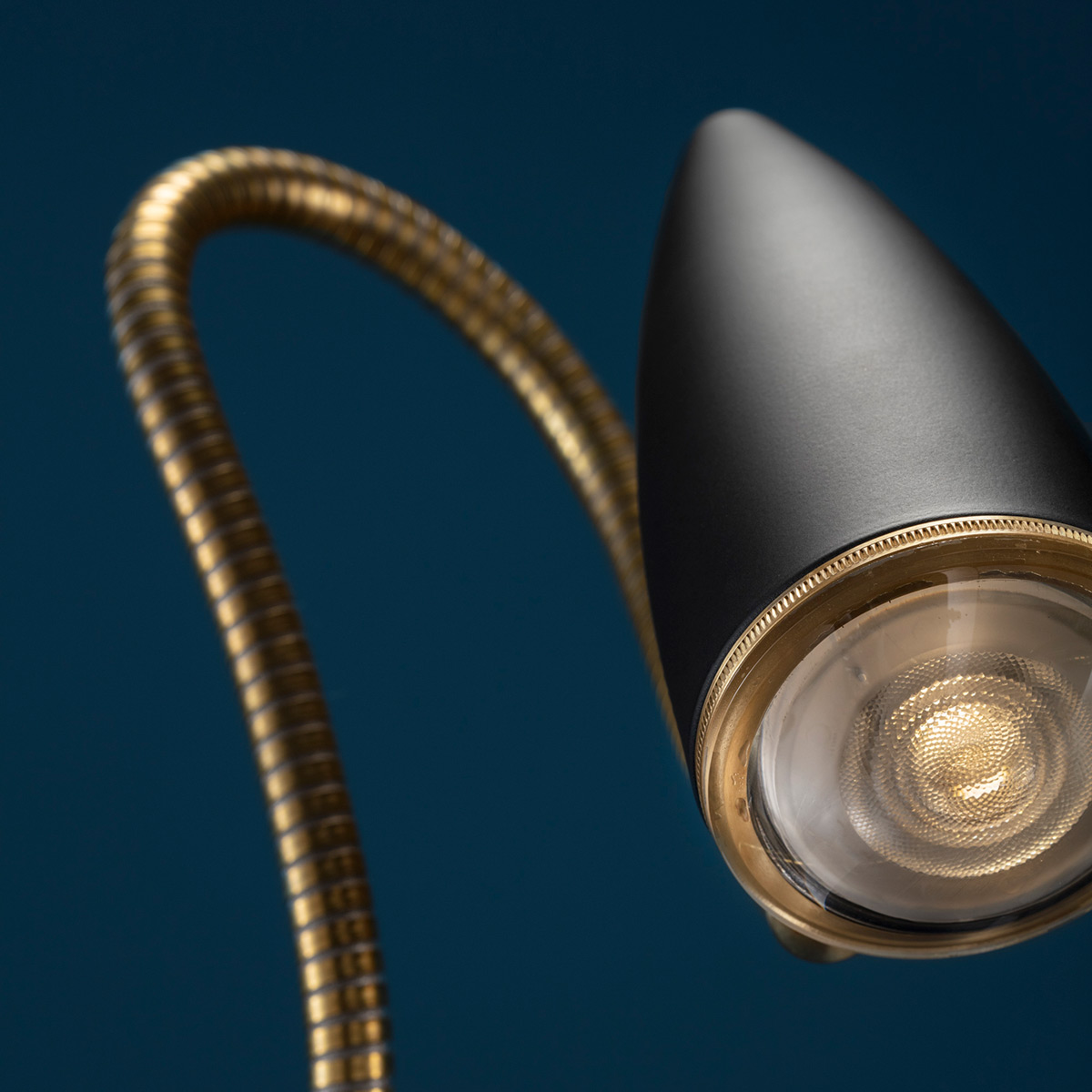 | Material/surface: | Refined metal, flex arm: untreated brass, glass lens |