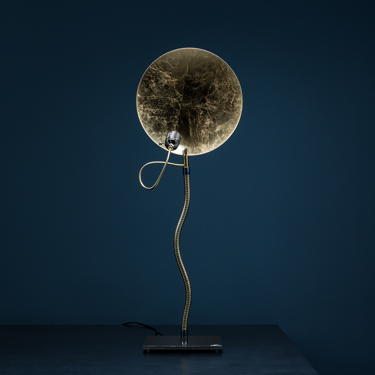 | Material/surface: | Aluminum with metal leaf coating, base: pig iron, flexible arm: nickel / brass, cable: black |
