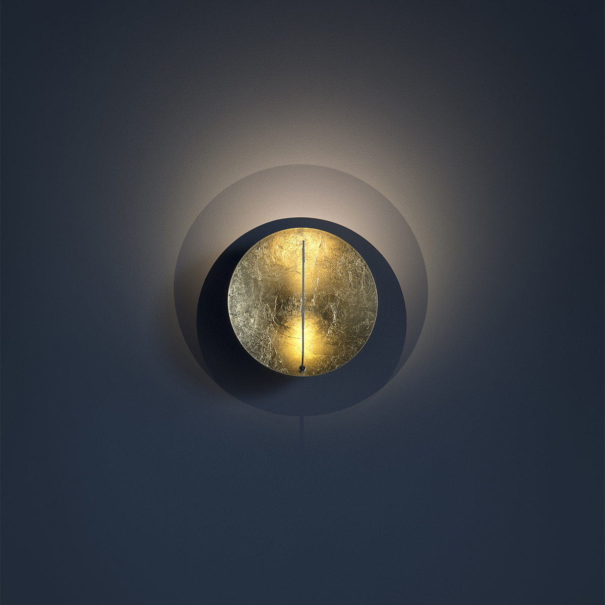 - Scheibenförmige Wandleuchte mit filigranem Lichtstab