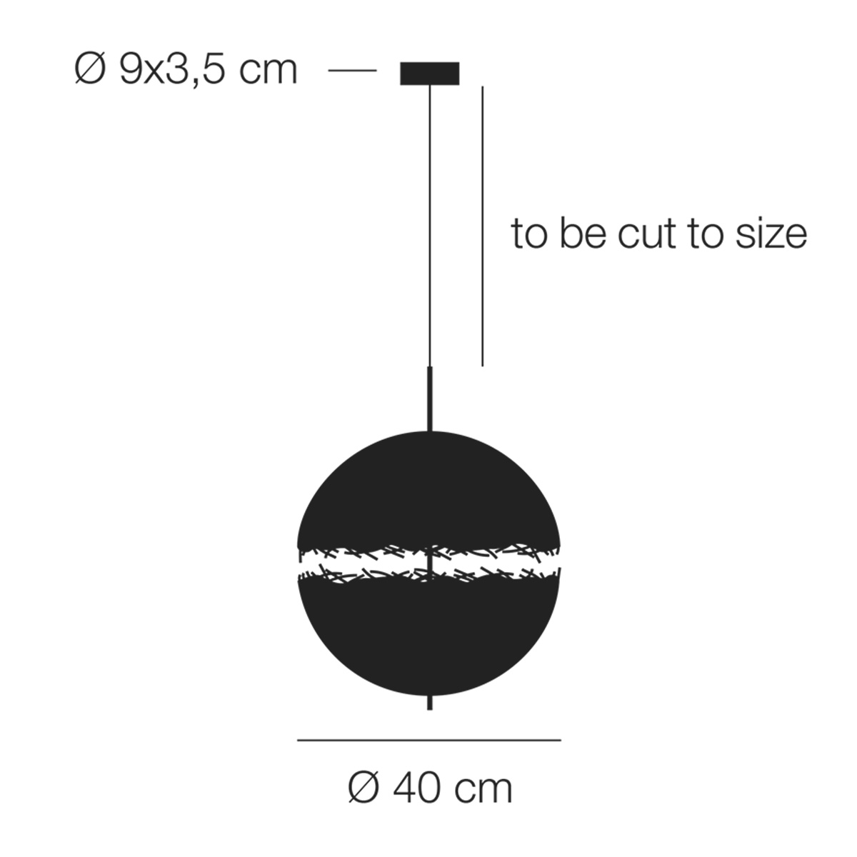- Die Aufhängung ist bei Montage kürzbar