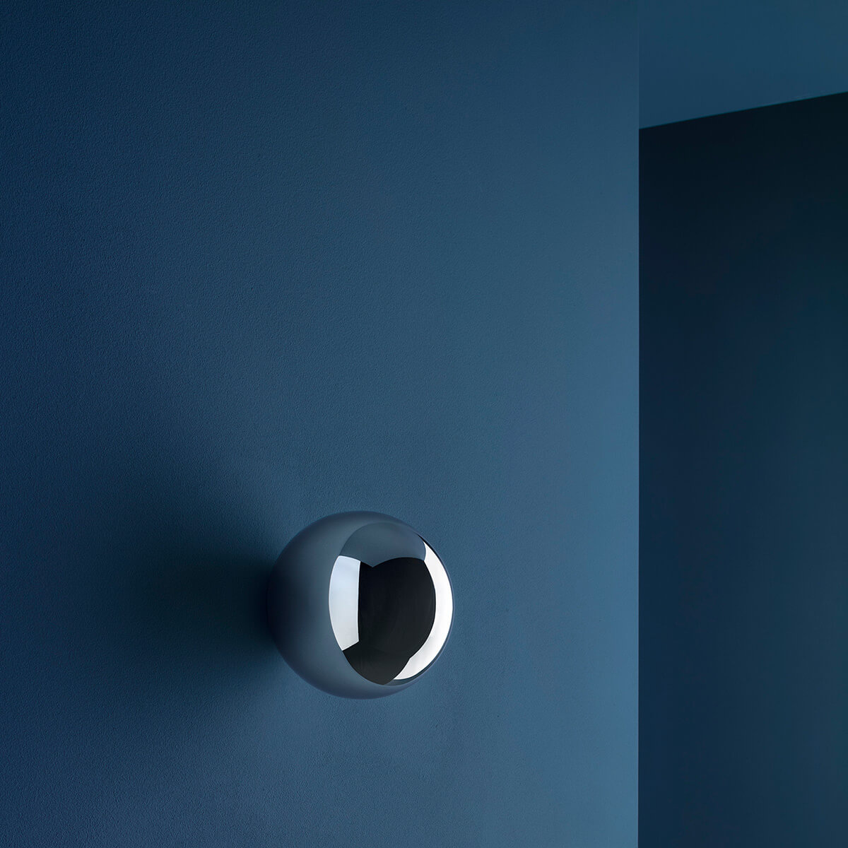 Die Sfera W LED Wandleuchte von Catellani & Smith ist ein Ausdruck italienischer Meisterschaft in punkto Design und Kunstfertigkeit. Mit ihrer runden Form und ihrem eleganten Stil schafft sie eine moderne Atmosphäre. Inspiriert durch das unverwechselbare Selbstporträt von M. C. Escher – eine von einer Hand gehaltene Metallsphäre, in der sich das Antlitz des Künstlers spiegelt –, bringt sie zeitlose Schönheit in jeden Raum. Verwendet als Einzelleuchte oder in Kombination, bietet die Leuchte vielfältige Beleuchtungsoptionen und betont das fesselnde Spiegelbildspiel.