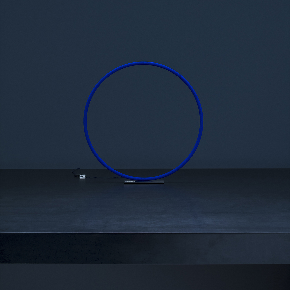 | Material/surface: | Pig iron, ring: blue lacquered copper, cable: blue |