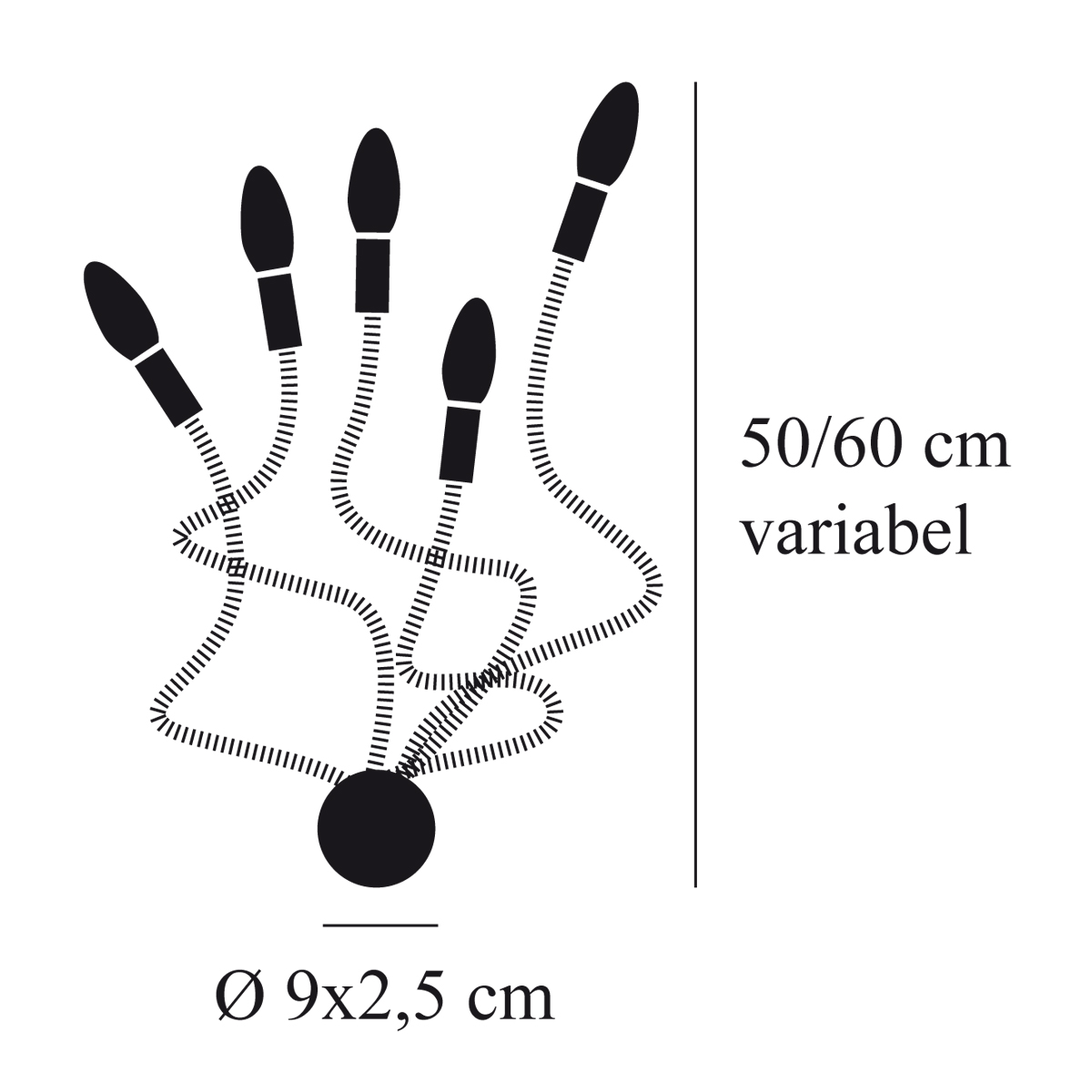 | Other dimensions: | Canopy: Ø 9×2.5 cm, (5x) flex arm: Ø 0.85 x 75 cm |