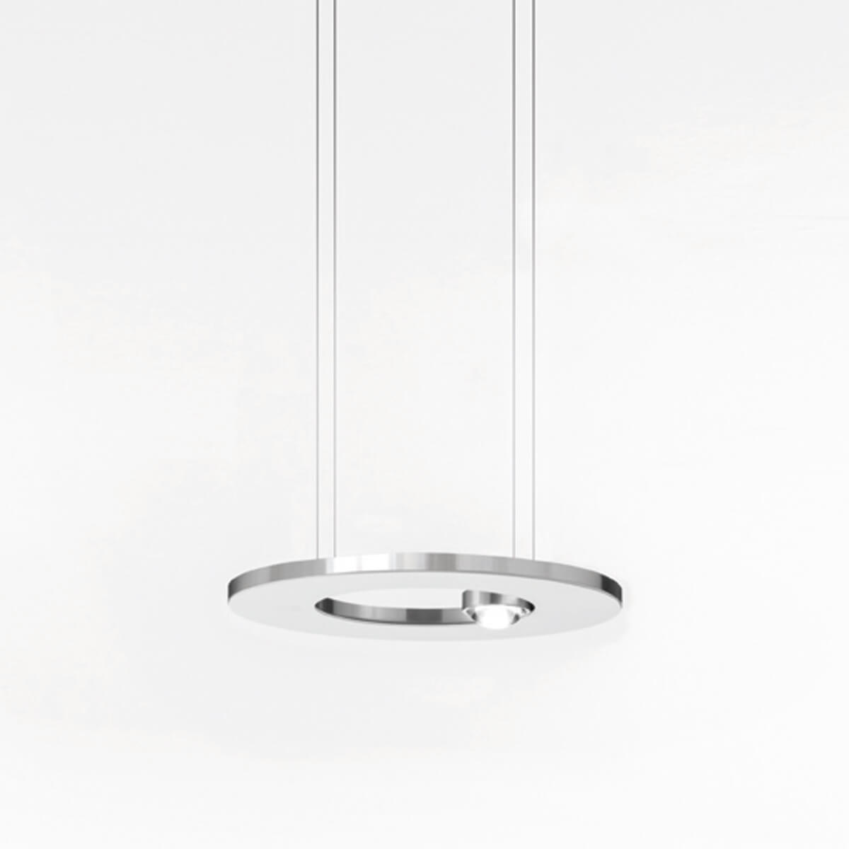Die Hängelampe ist in verschiedenen edlen Oberflächen erhältlich, die ihr eine luxuriöse Ästhetik verleihen und jede Einrichtung aufwerten. Besonders apart wirkt der ringförmige Lampenschirm in glanzpoliertem Gold, modern und erlesen erscheinen die Versionen mit glanzvoller Verchromung oder matter Emaille-Lackierung. Für umfangreichere Beleuchtungskonzepte ist ein Baldachin zur Reiheninstallation als Zubehör erhältlich.
