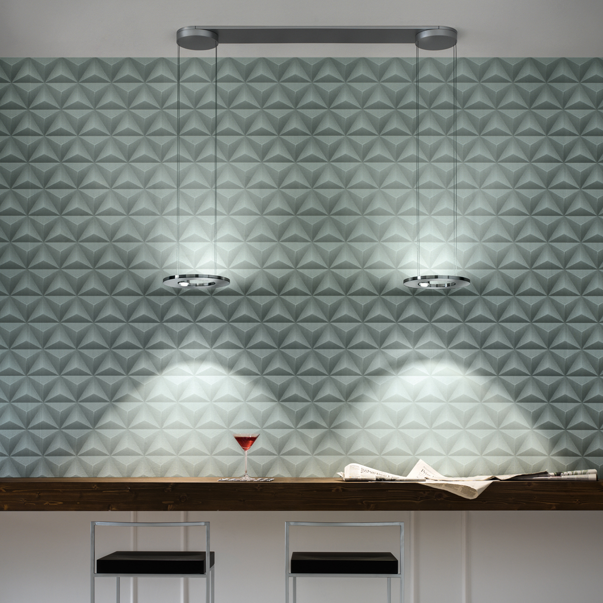 Die Cini & Nils Passepartout25 sopratavolo, eine Kreation der renommierten Designerin Luta Bettonica, vereint formvollendetes Design mit hohem Bedienkomfort. Die ringförmige Pendellampe ist speziell für die Beleuchtung von Tischflächen, Theken und Tresen konzipiert und bietet einen angenehmen, direkten sowie indirekten Lichtaustritt.