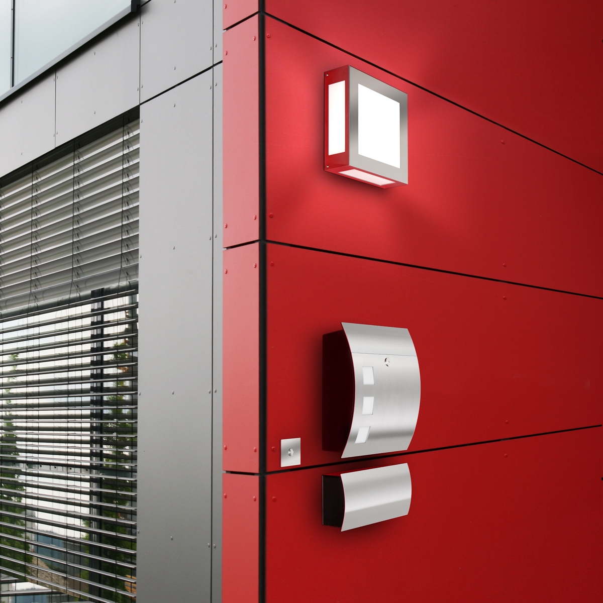- Mit quadratischen Fenstern aus Opalglas