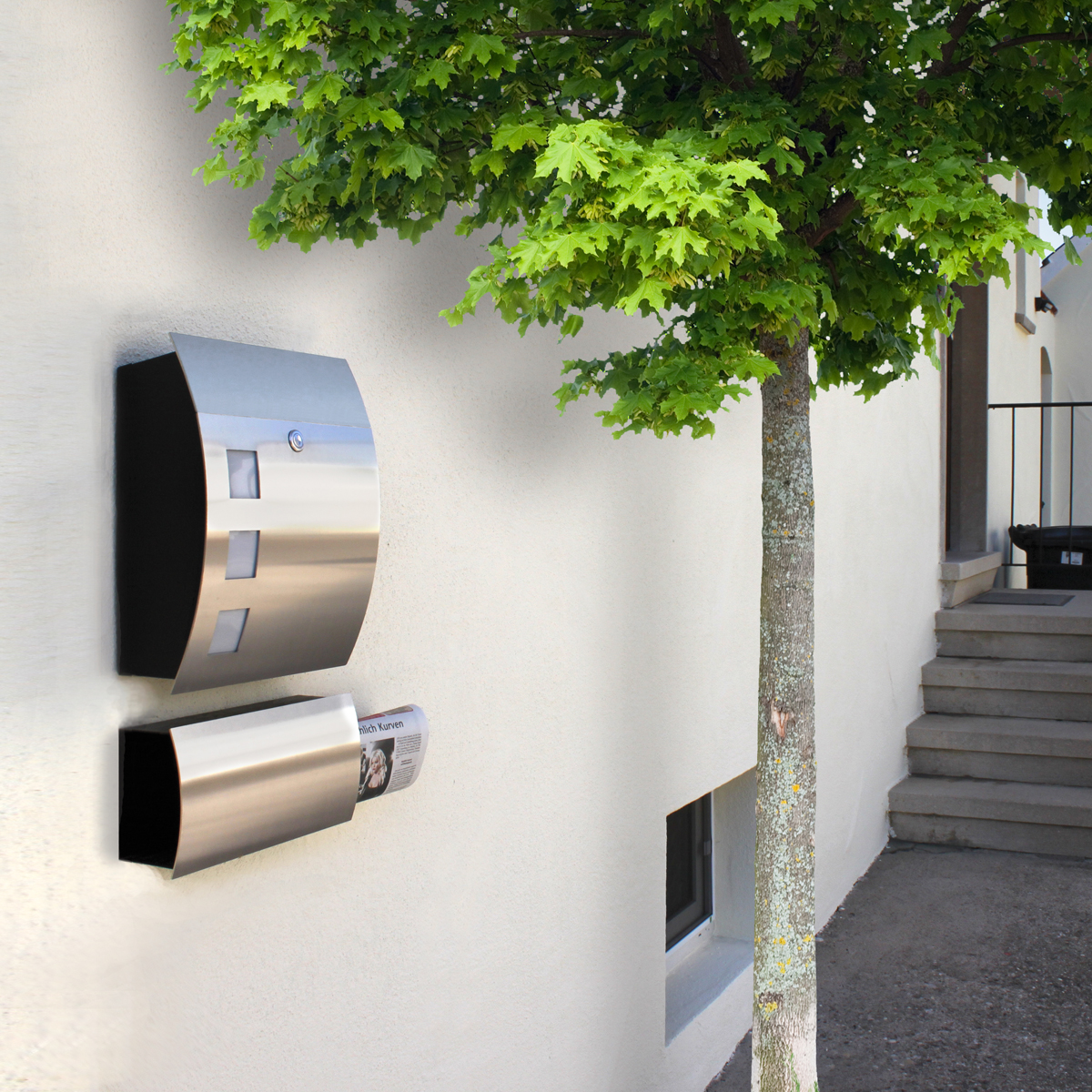 - Briefkasten mit schwarz pulverbeschichtetem Korpus