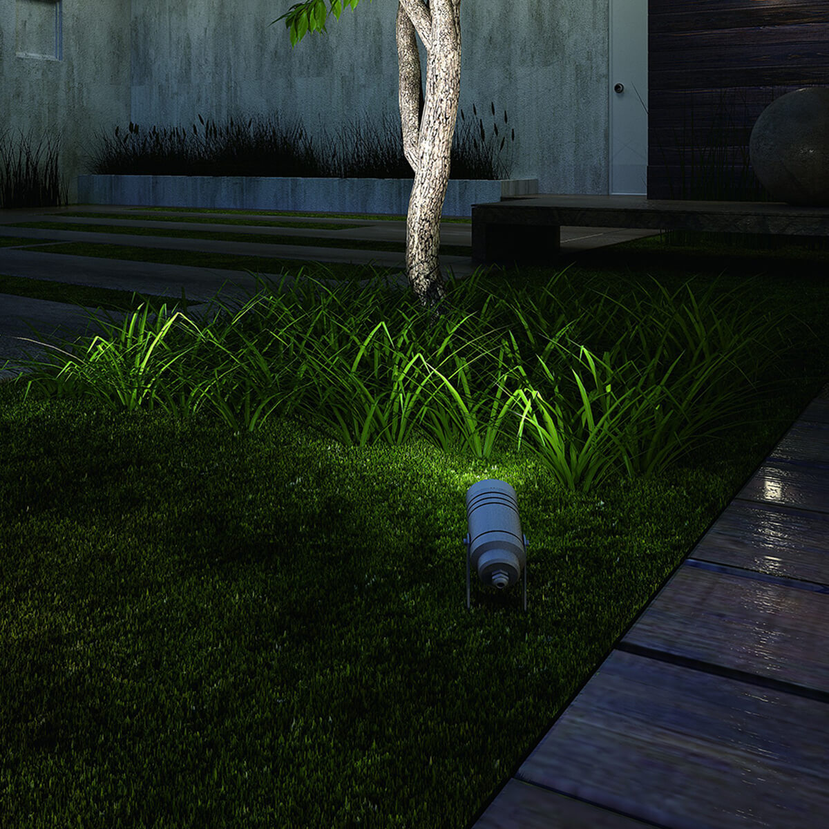 Robuster Außenstrahler, der sowohl auf festen Untergründen als auch in der Erde montiert werden kann. Für die Befestigung in Grün- und Beet Flächen ist ein Erdspieß im Lieferumfang enthalten.