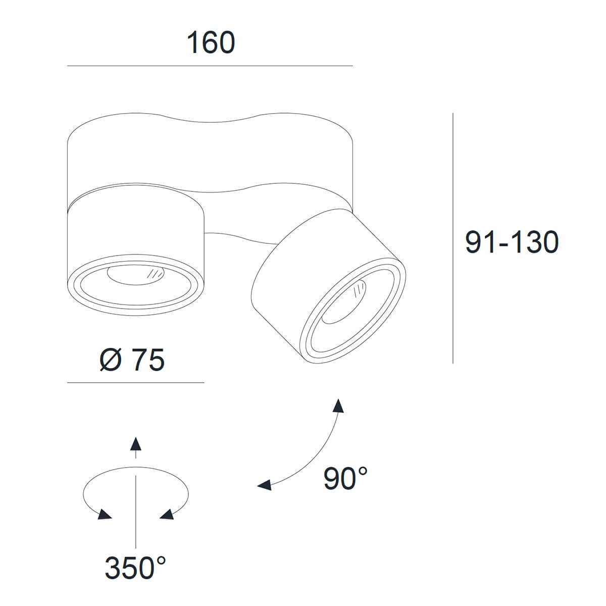 - Die Köpfe sind je um 350° dreh- und um 90° kippbar