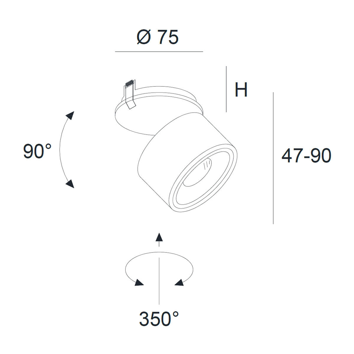 - Mit dreh- und schwenkbarem Strahlerkopf (350°/90°)