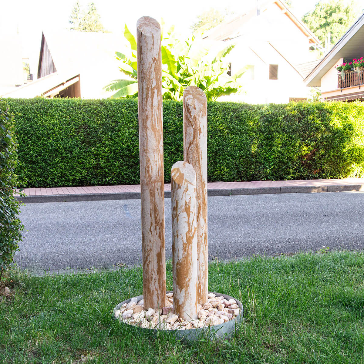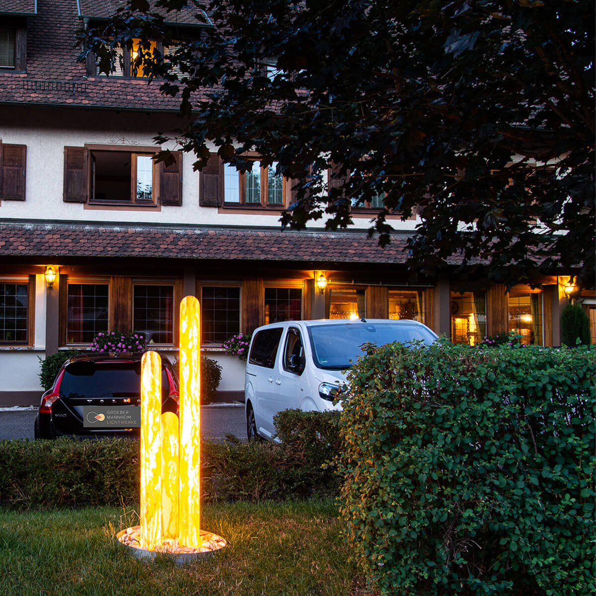 - Strukturierte Quarzsandsteinoberfläche – jede Leuchte ist ein Unikat