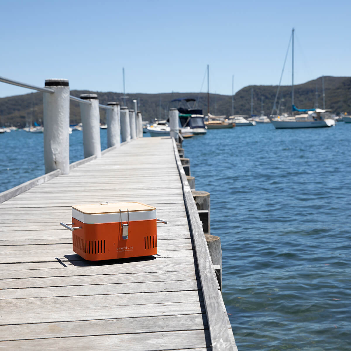 Der portable Everdure Cube bietet Holzkohle-Grillgenuss to go. Dank seines geringen Gewichts und der hitzeisolierten Tragegriffe lässt er sich bequem überallhin mitnehmen, von der Terrasse daheim zum See oder Picknick im Park. Da der Grill mit einem Bambusbrett und einer hohen Aufbewahrungsschale ausgestattet ist, haben Sie immer alles dabei, was Sie benötigen. Aufbewahren, Vorbereiten, Grillen und Servieren – alles kein Problem mit dem Cube Holzkohlegrill.