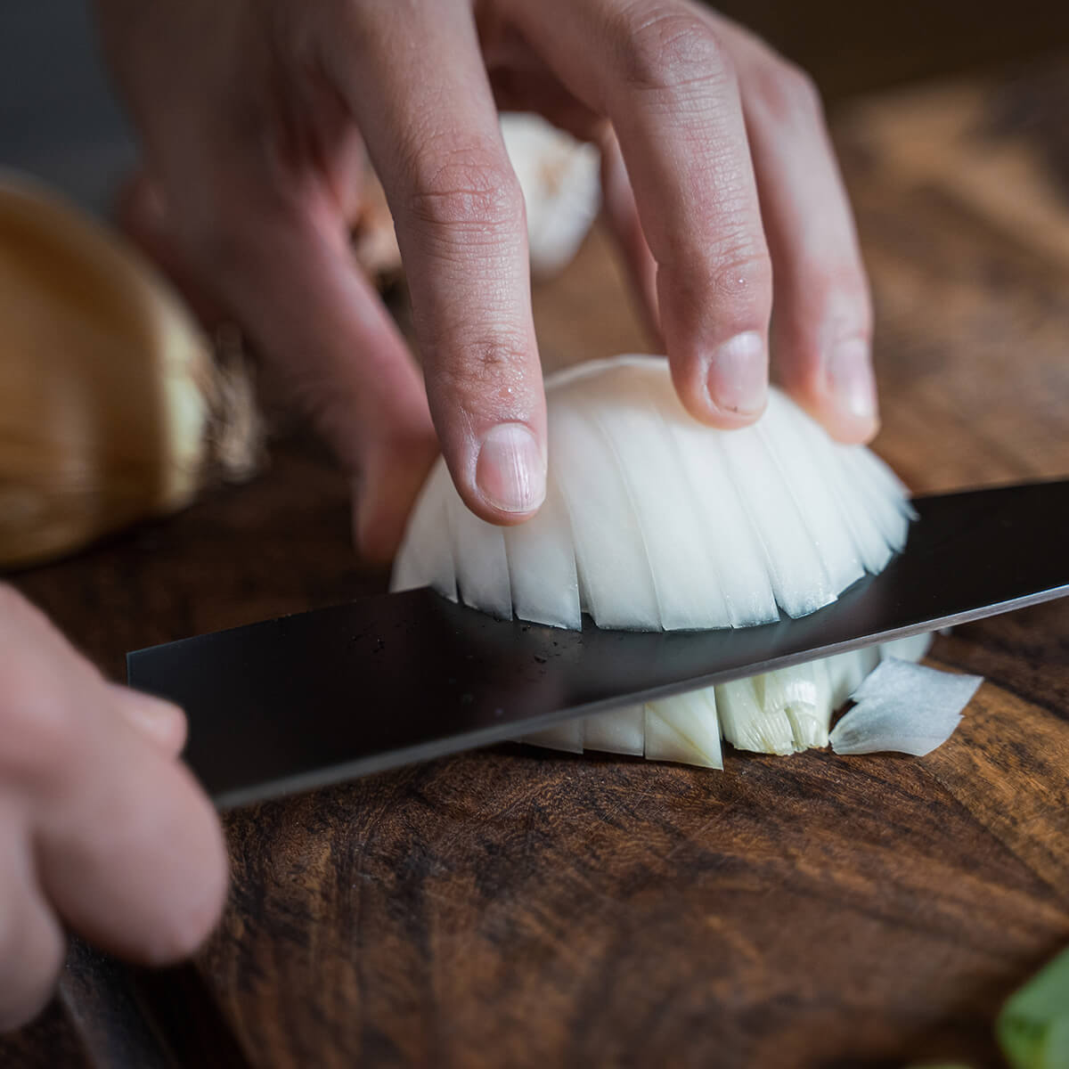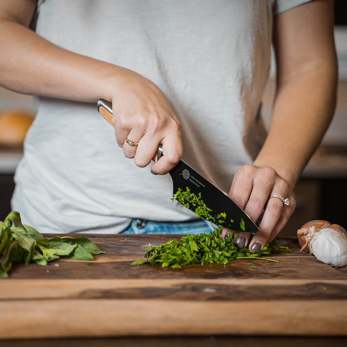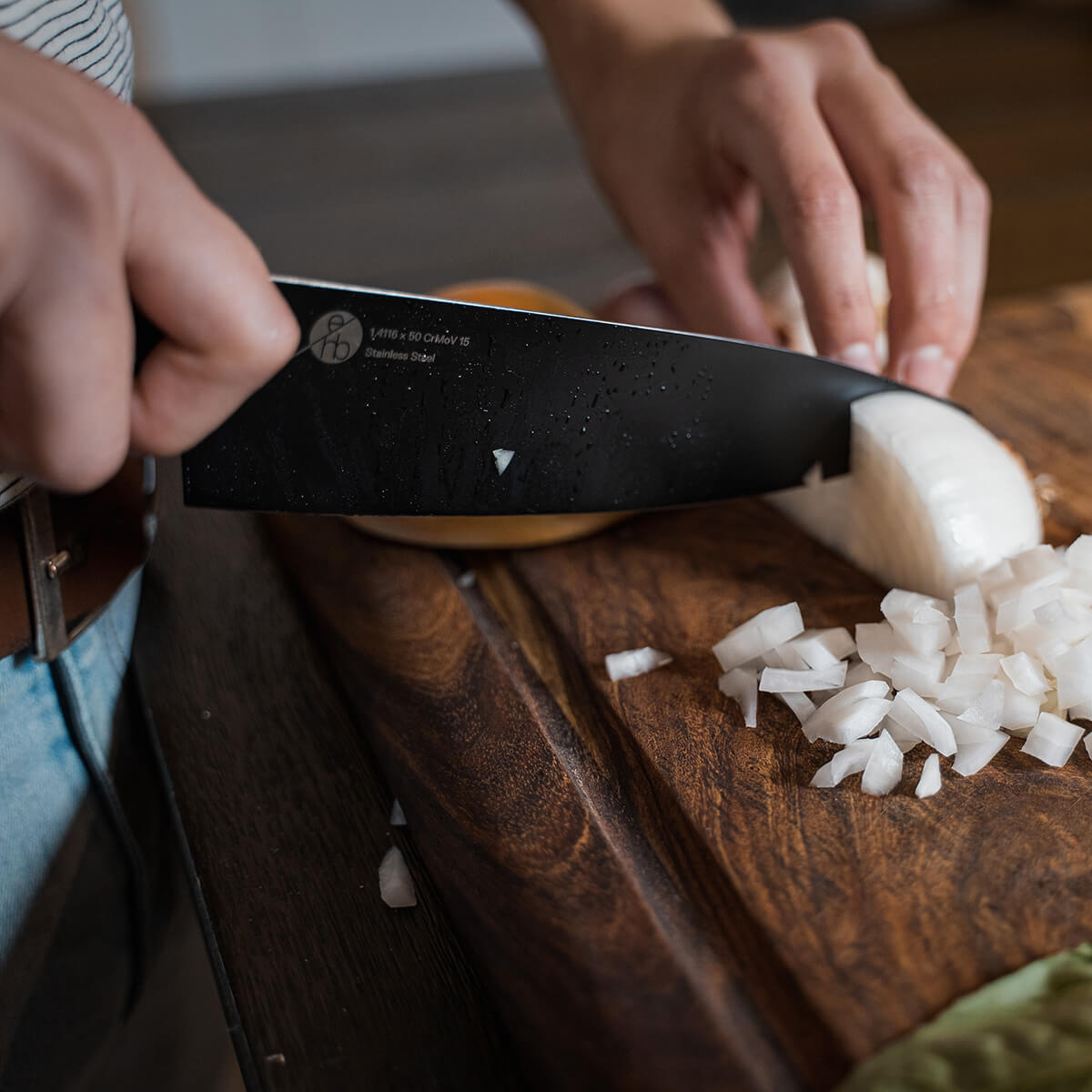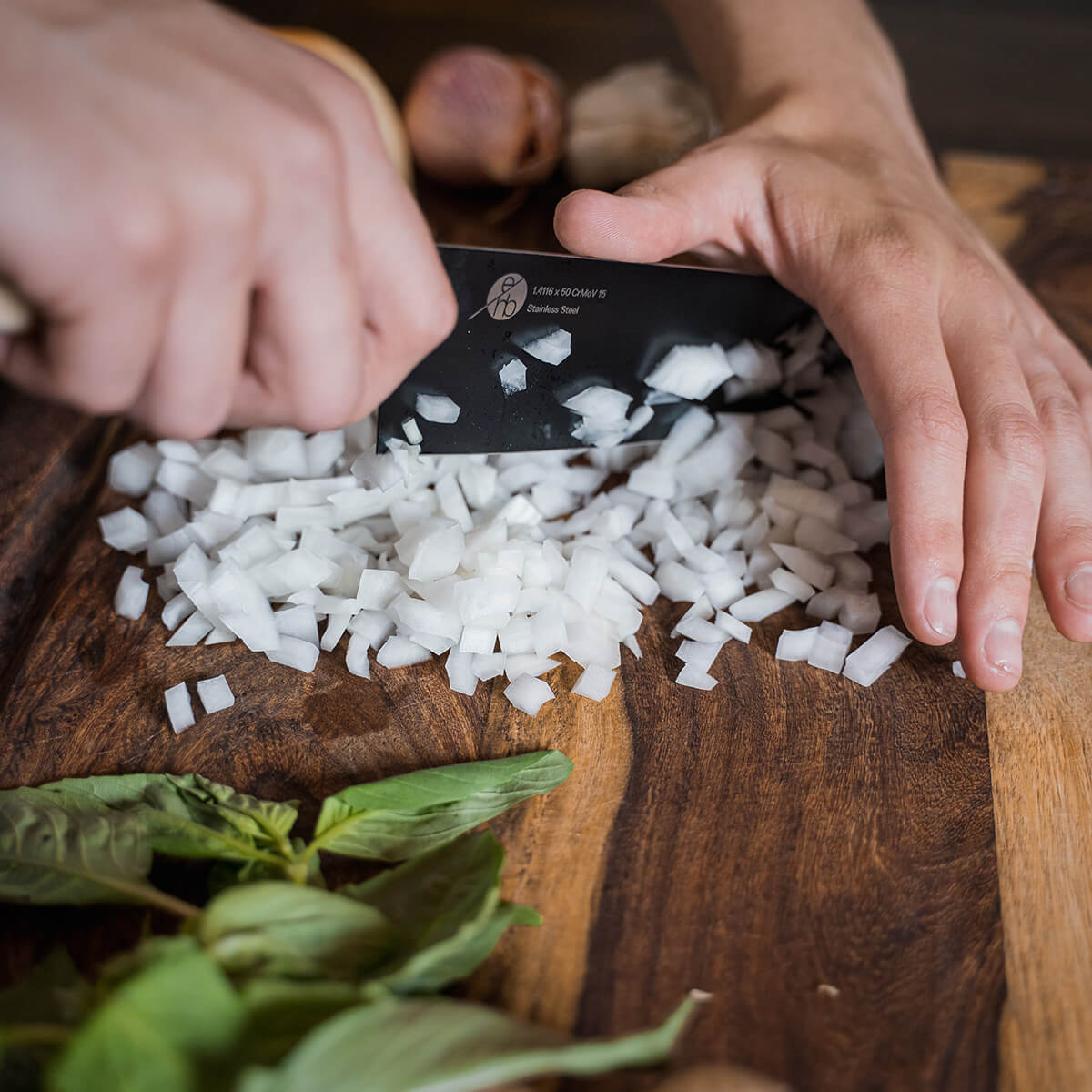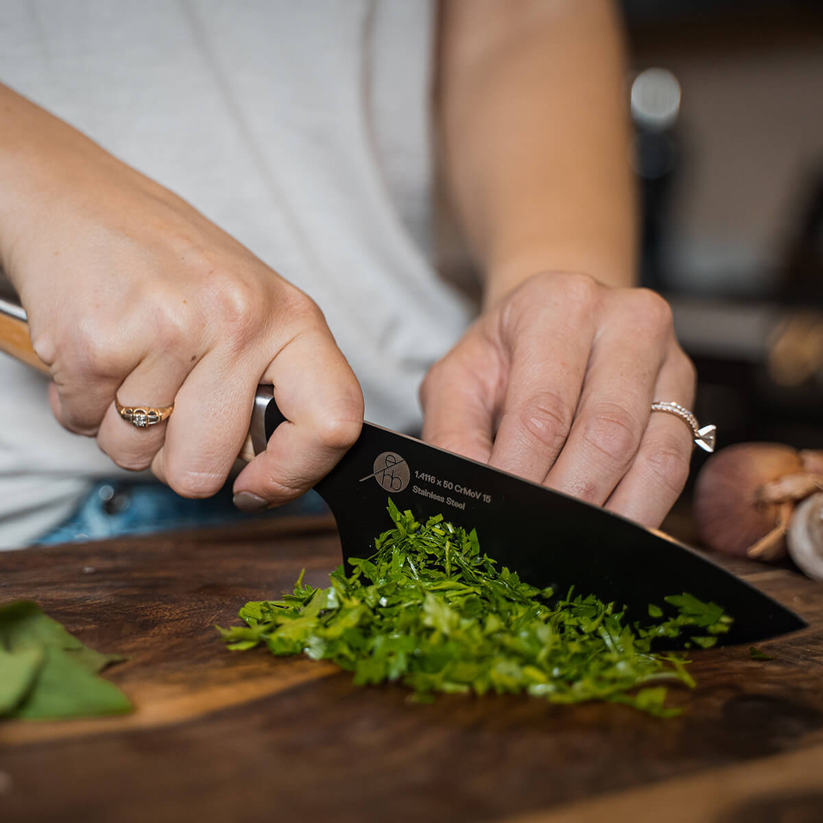 - Allzweck-Küchenmesser zum Schneiden und Hacken verschiedenster Lebensmittel (Gemüse, Fisch, Fleisch, Kräuter, Nüsse etc.)
