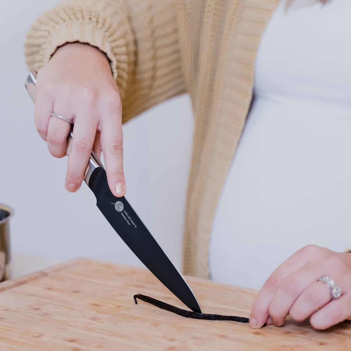 - Messergriff aus Edelstahl und attraktiv gemasertem Pakkaholz