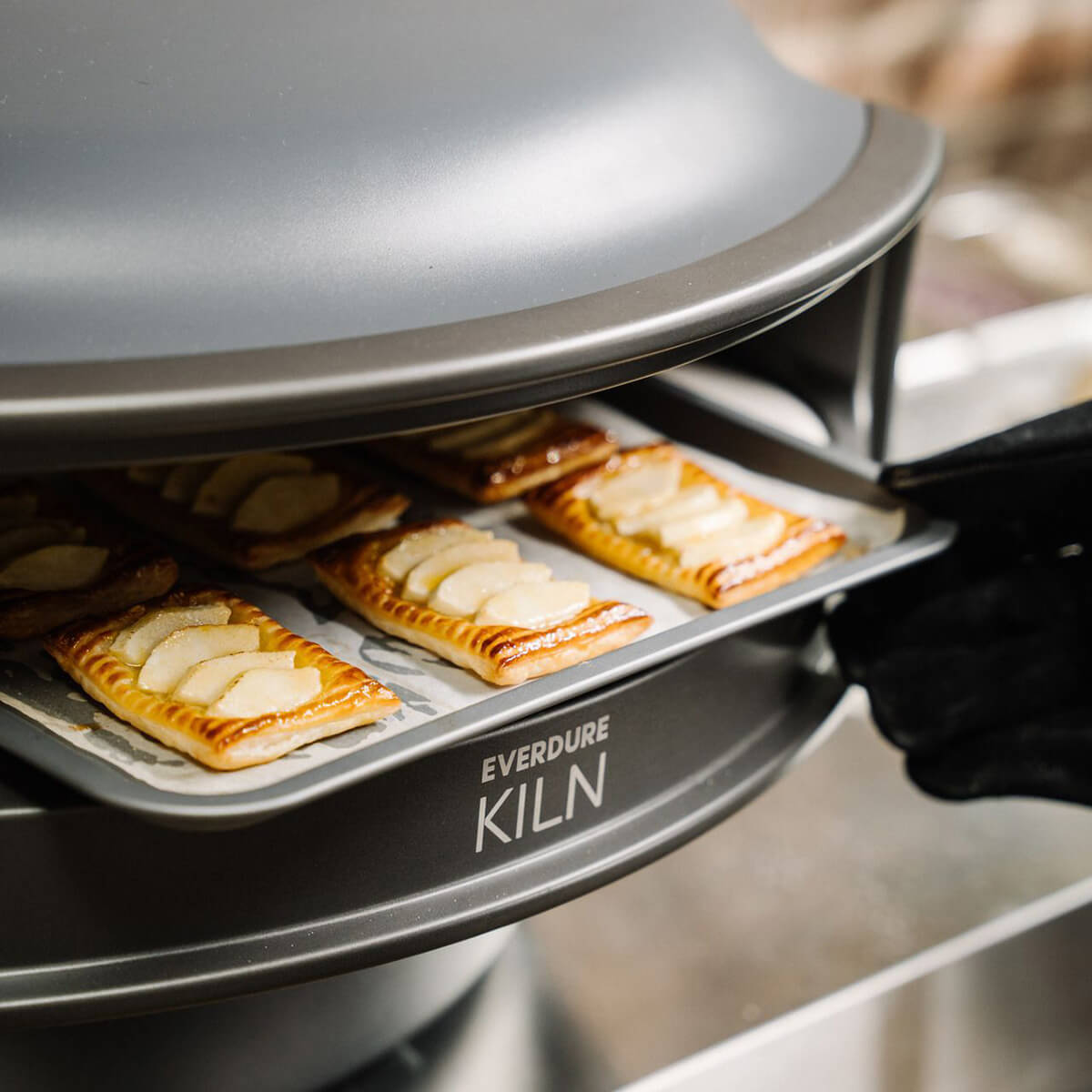 Der große Backraum des KILN bietet Platz für zwei kleine Pizzen oder eine große Pizza von bis zu 40,5 cm Durchmesser. Er ist zudem ausreichend hoch, um auch zum Überbacken oder Searing verwendet zu werden. Die Zubereitung von Gerichten in Gusseisentöpfen oder -pfannen ist ebenfalls kein Problem. Auf diese Weise können Sie Ihren kulinarischen Genüssen freien Lauf lassen.