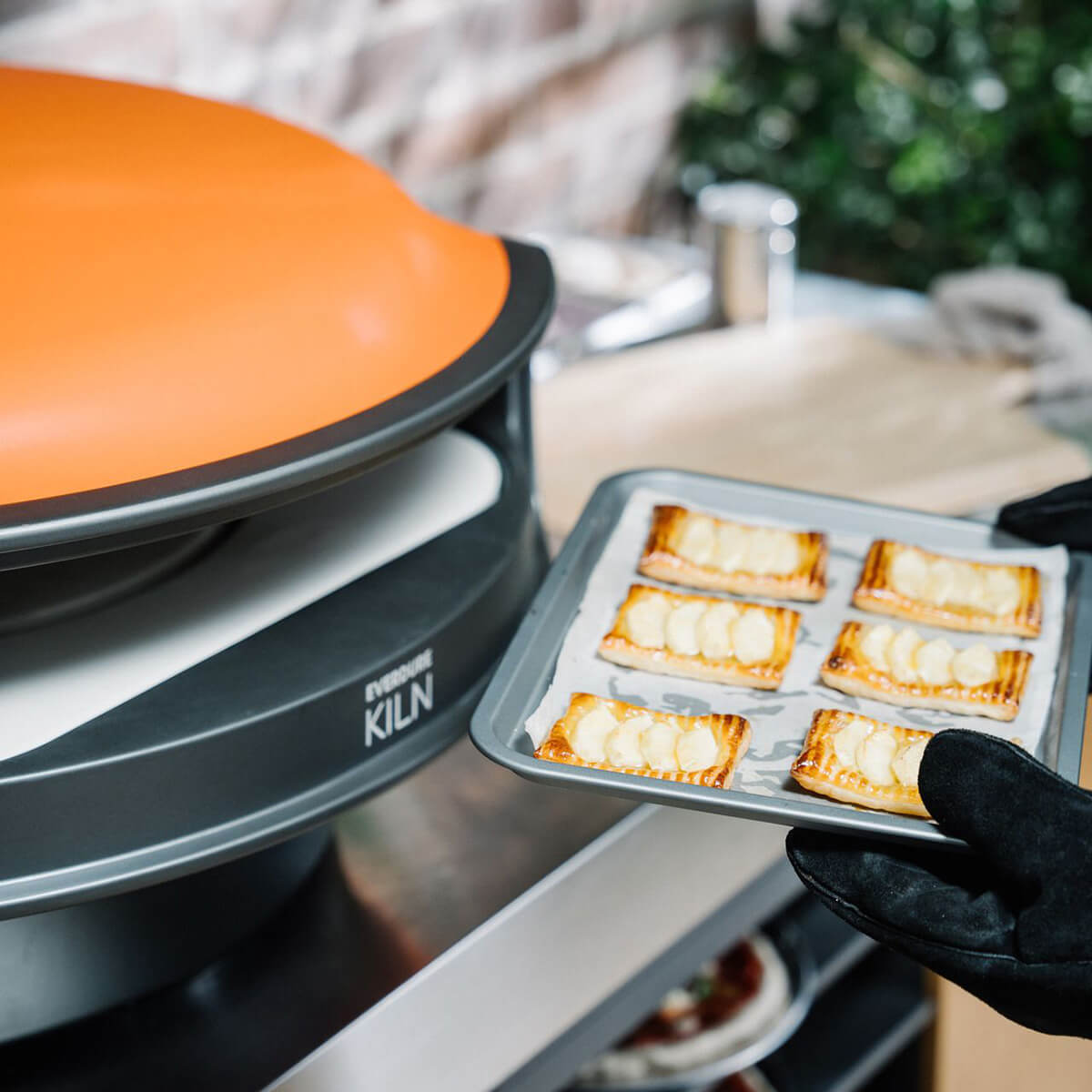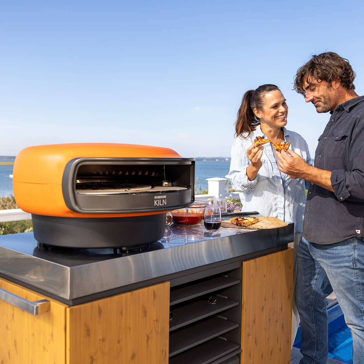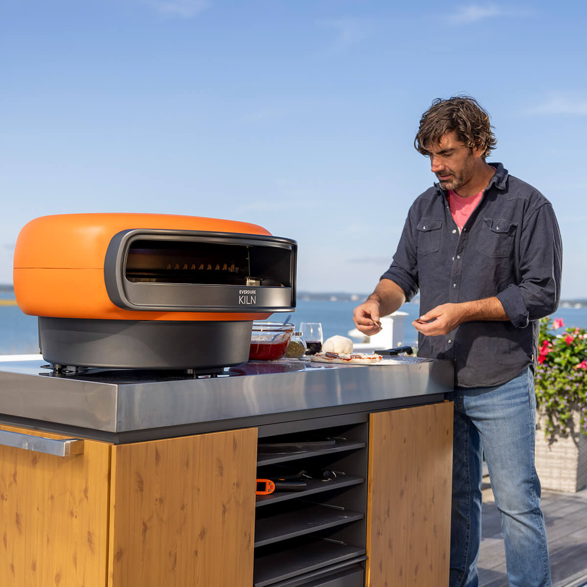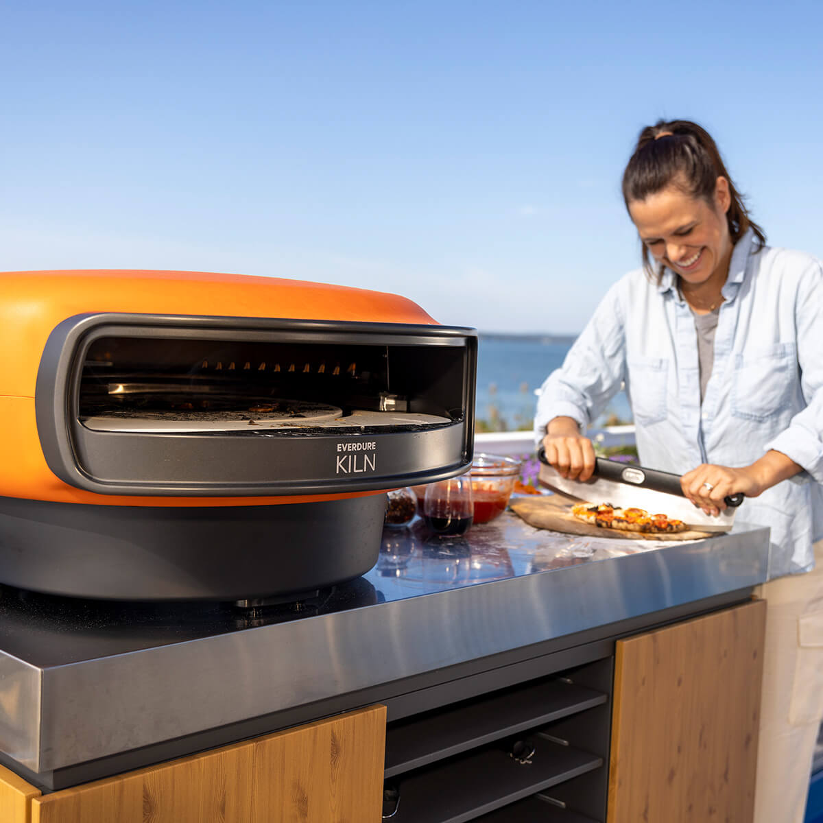 Mit dem Everdure KILN Pizzaofen, ausgestattet mit zwei Brennern und einem rotierenden Pizzastein, verwandeln Sie jede Outdoor-Küche in eine professionelle Pizzeria. Sein selbstbewusstes Design und das beeindruckende Leistungsvermögen schaffen eine einzigartige Mischung aus Funktionalität und Stil, die jeden Pizza-Liebhaber begeistern wird.