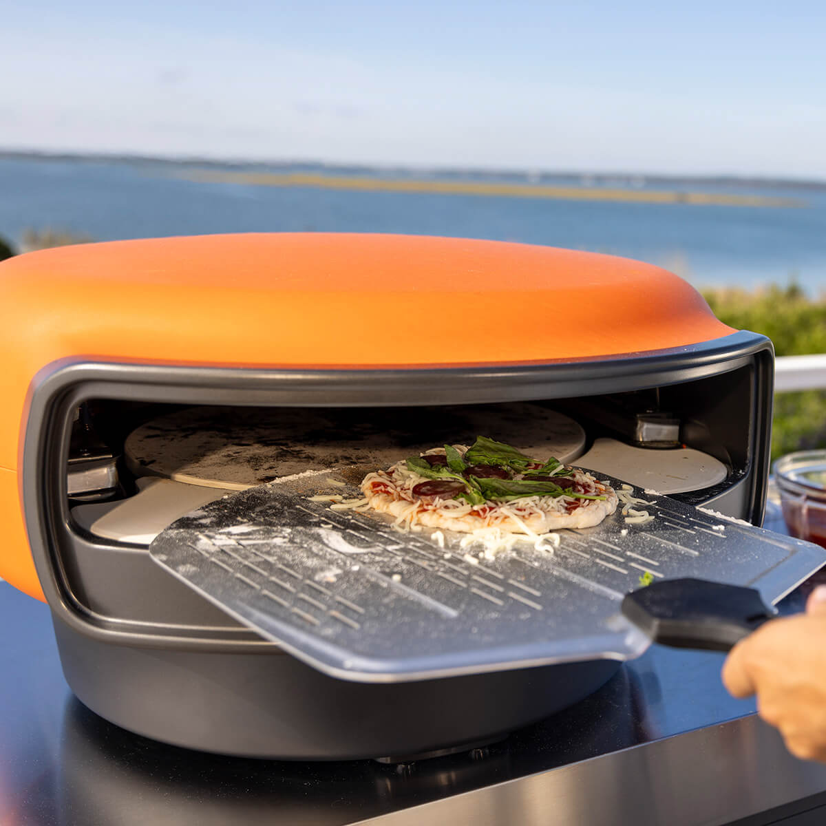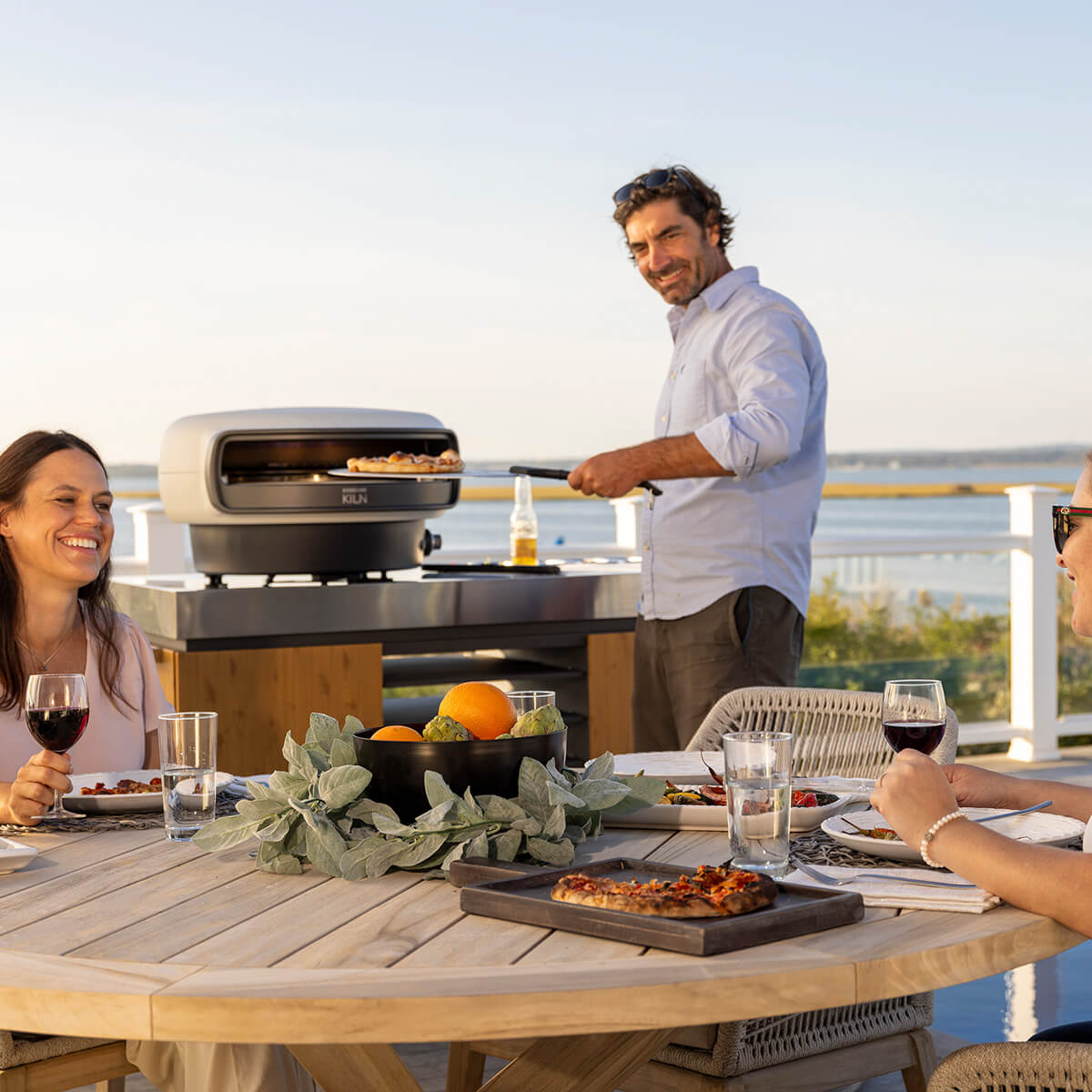 Das zweifach isolierte Aluminiumgehäuse des KILN hält die Wärme im Inneren und sorgt so für eine hohe Energieeffizienz. Mit seiner großzügigen Backfläche bietet der Ofen zudem Platz für die Zubereitung zweier kleiner Pizzen oder einer großen Pizza mit 40,5 cm Durchmesser. Da der Pizzastein herausnehmbar ist, gestaltet sich auch die Reinigung als Kinderspiel.