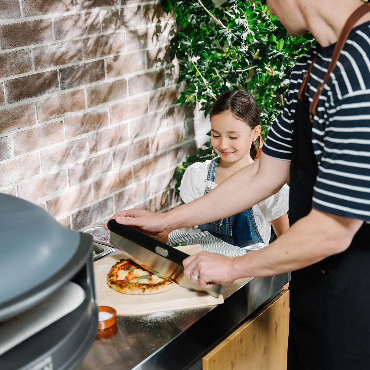 Dank der zwei leistungsstarken Brenner (9,2 kW / 31.400 BTU) erreicht der Gas-Pizzaofen in nur 15 Minuten eine Temperatur von 500 °C. Damit ist Ihre Pizza in weniger als 60 Sekunden perfekt gegart. Während der u-förmige Hauptbrenner für eine gleichmäßige Hitzverteilung beim Backen sorgt, garantiert der zusätzliche Booster-Brenner unter dem Pizzastein einen knusprig gegarten Pizzaboden.
