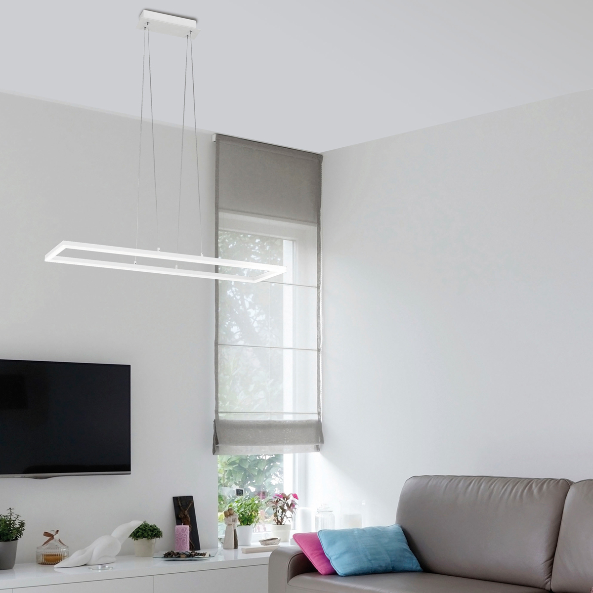 - Stilvolle Rahmen-Pendellampe in linienbetontem Design
