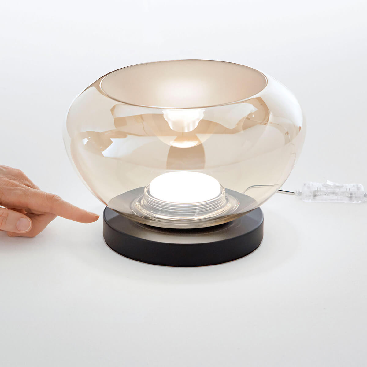 - Moderne Tischlampe mit einem Schirm aus Borosilikatglas