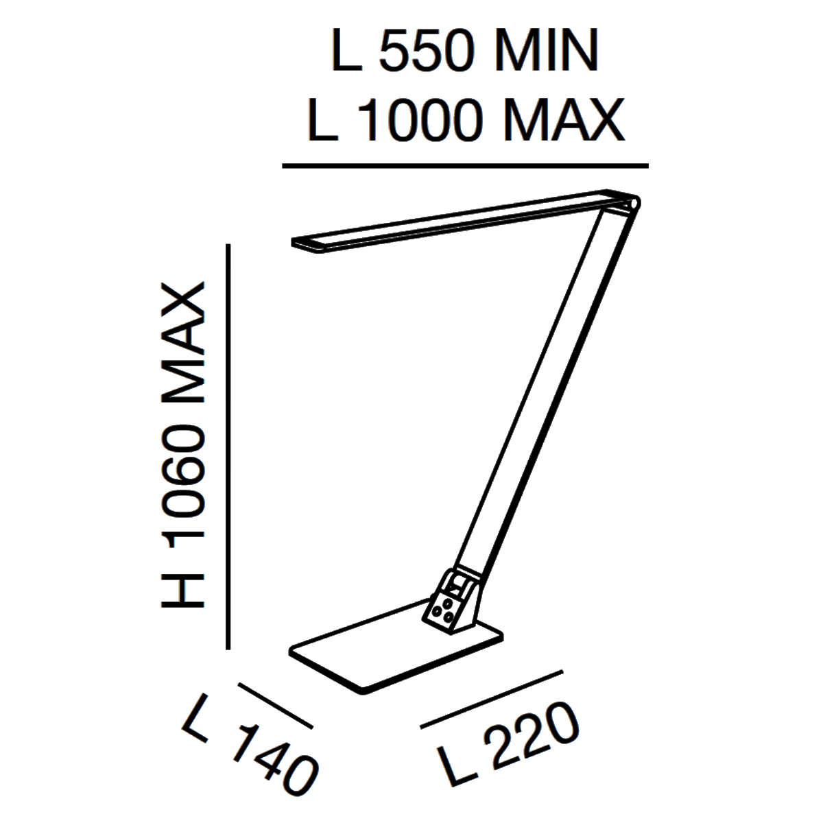 Entdecken Sie die Wasp von Fabas Luce, eine moderne Tischlampe, die innovative Funktionalität mit einem minimalistischen Design verbindet. Die Schreibtischlampe überzeugt durch ihre verstellbaren, flach gestalteten Leuchtenarme, die um bis zu 240° bzw. 135° schwenkbar sind und eine flexible, direkte Lichtausstrahlung ermöglichen.