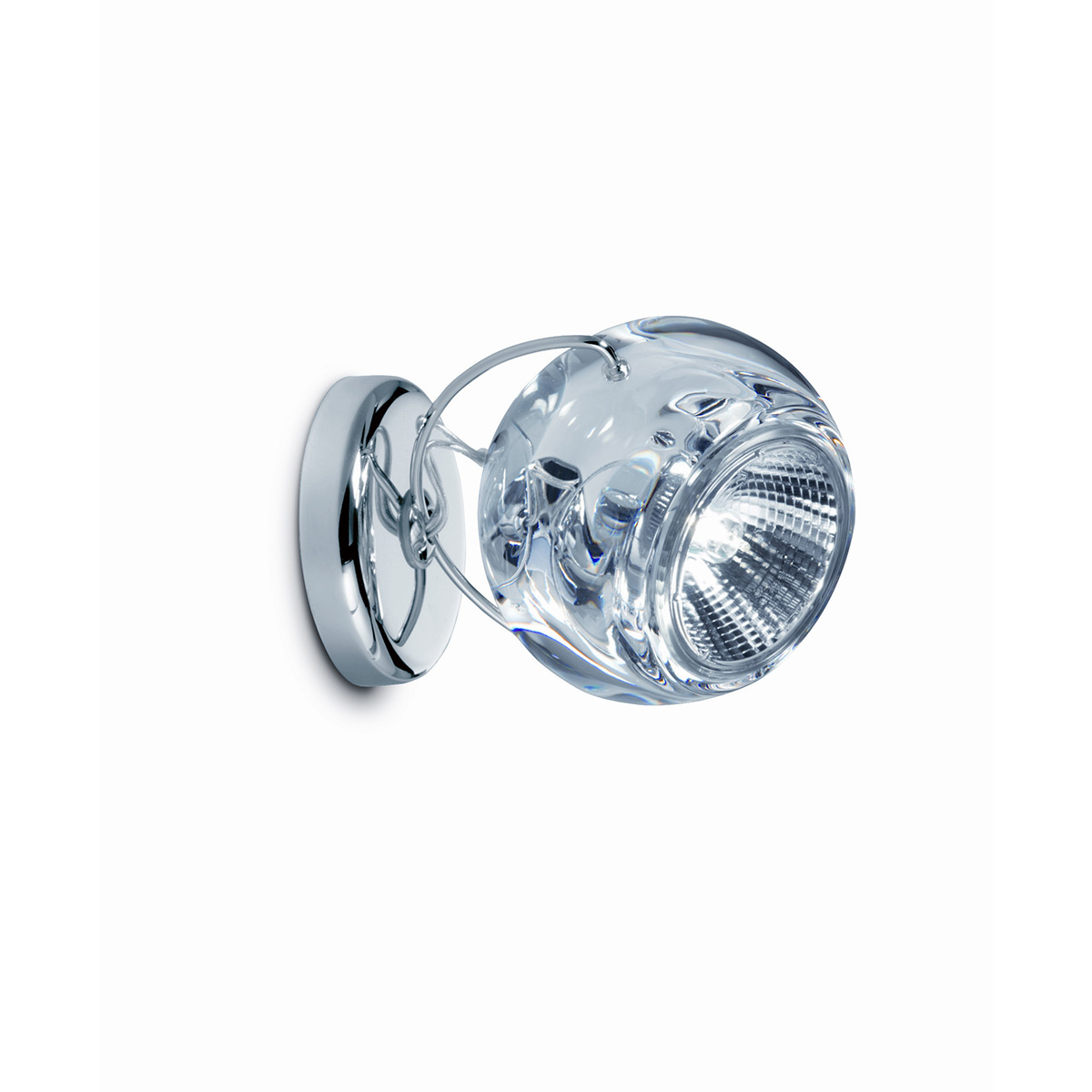 Gefertigt sind die Leuchtenköpfe der Fabbian Beluga Colour Wand- / Deckenleuchte aus 24 % Bleikristall in transparenter oder farbiger Tönung (rot, blau, gelb, grün oder kupferbraun lackiert), was dem Produkt ein elegantes und strahlendes Aussehen verleiht. Die Wand- bzw. Deckenhalterung besteht aus glanzverchromtem Metall.