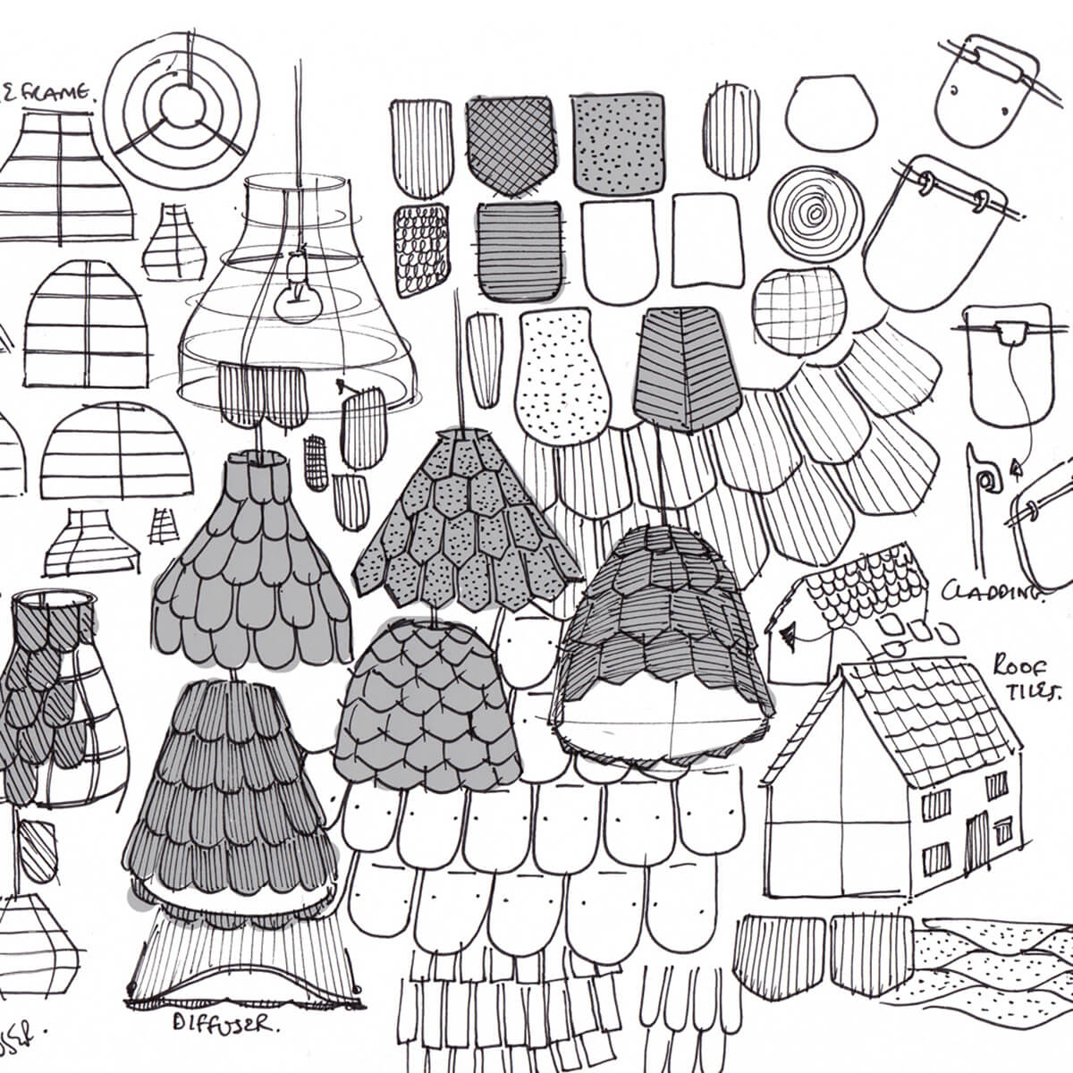 Fabbian Roofer Pendelleuchte, Entwurfsskizze von Benjamin Hubert