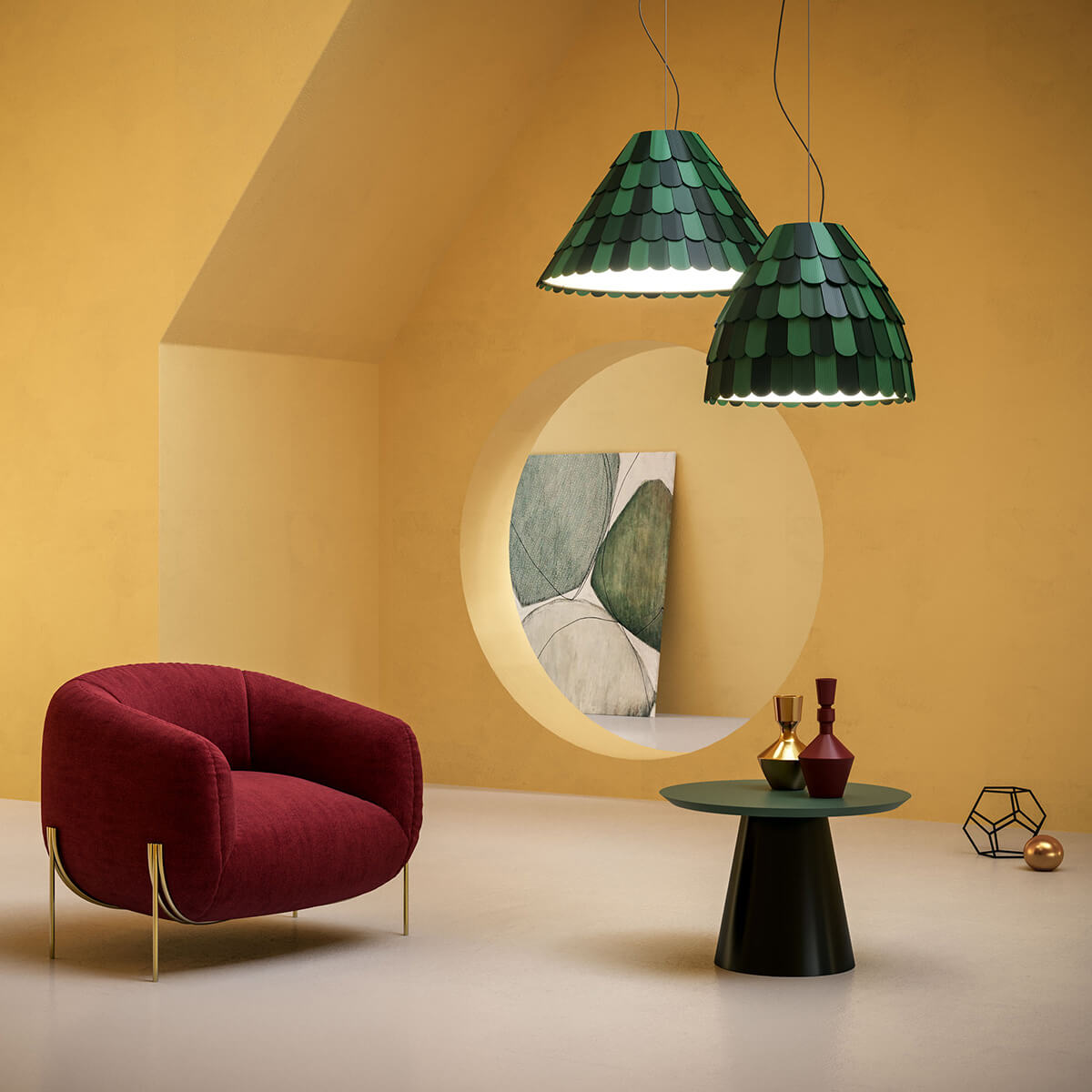 Fabbian Roofer Pendelleuchte, farbige Gummi-Schindeln (maschinenwaschbar)