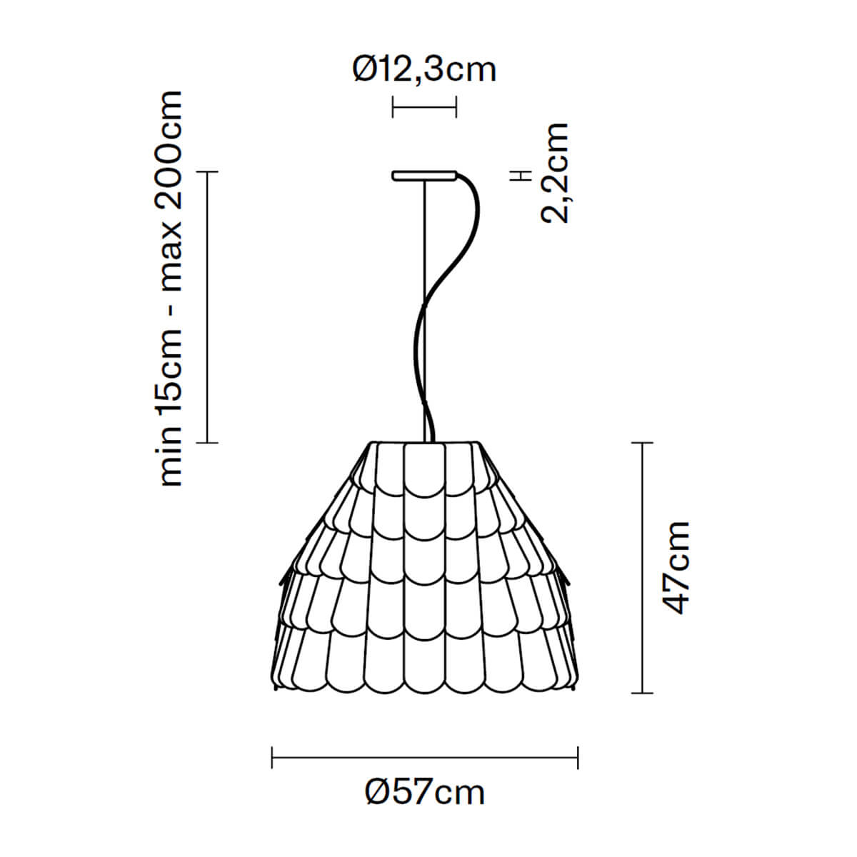 Fabbian Roofer Pendelleuchte, Maßzeichnung