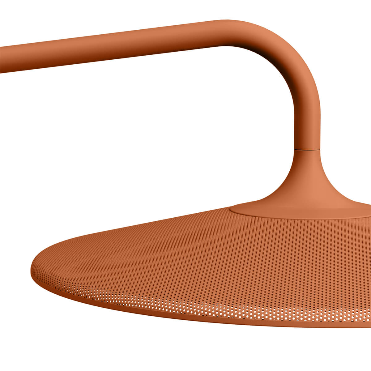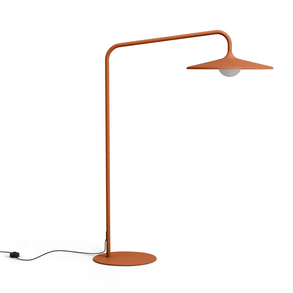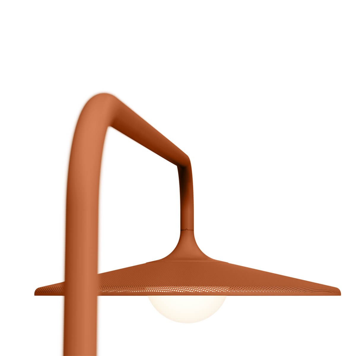 Das schlanke Gestell trägt einen großen, runden Lampenschirm, der wie ein modernes Statement-Objekt über Ihrem Outdoorbereich schwebt. Der perforierte Aluminiumschirm verleiht der Leuchte nicht nur ihren charakteristischen Look, sondern erfüllt zugleich eine clevere Funktion: Licht und Luft können frei zirkulieren, wodurch die Lampe auch bei Wind und wechselhaftem Wetter stabil bleibt. Ein transluzentes Gehäuse um die Lichtquelle sorgt für einen sanften, gleichmäßigen Lichtaustritt, der eine warme und einladende Atmosphäre schafft.