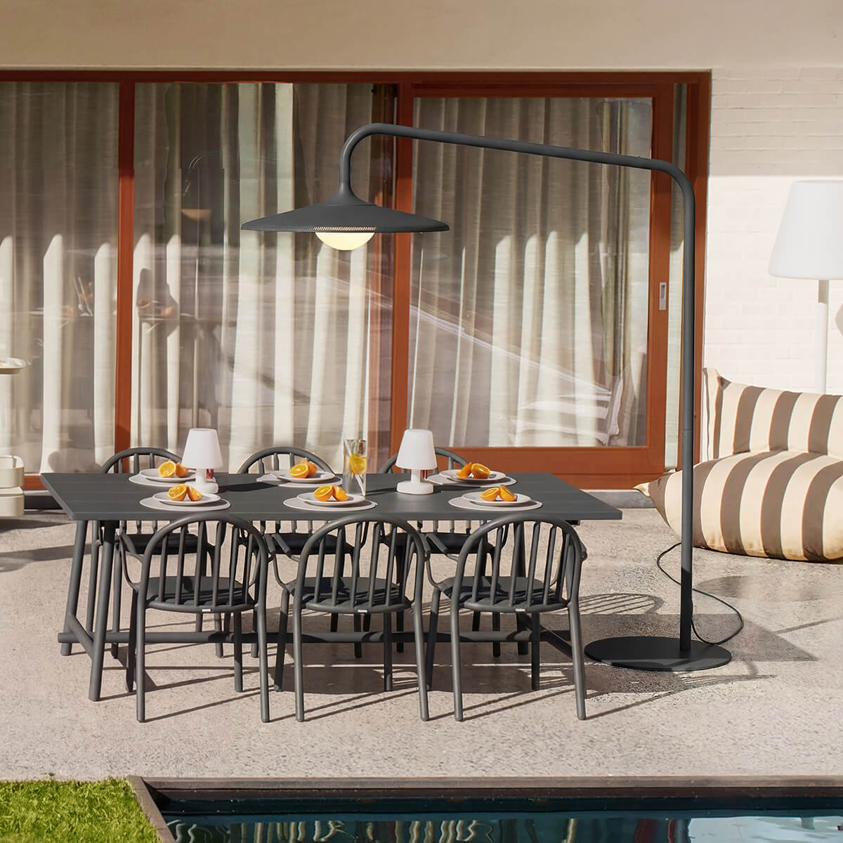 • Ausladende Outdoor-Stehlampe für Garten und Terrasse