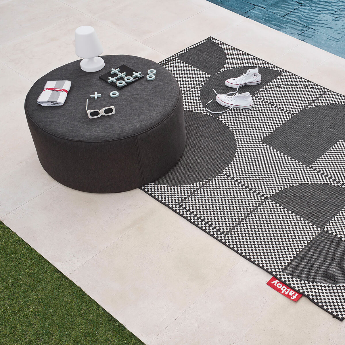 Damit das Kissen nicht von einer plötzlichen Sommerbrise davongetragen wird, können Sie es einfach mit dem mitgelieferten Erdspieß im Boden verankern. Außerdem ist es wasserabweisend beschichtet, sodass es ein paar Spritzer aus dem kühlen Nass nicht stört. Nach dem Gebrauch falten Sie das Fatboy Beach Baggy Strandhandtuch einfach zusammen, fixieren es mit dem Fatboy-typischen roten Gummiband und verstauen es wieder in seiner multifunktionalen Tasche.