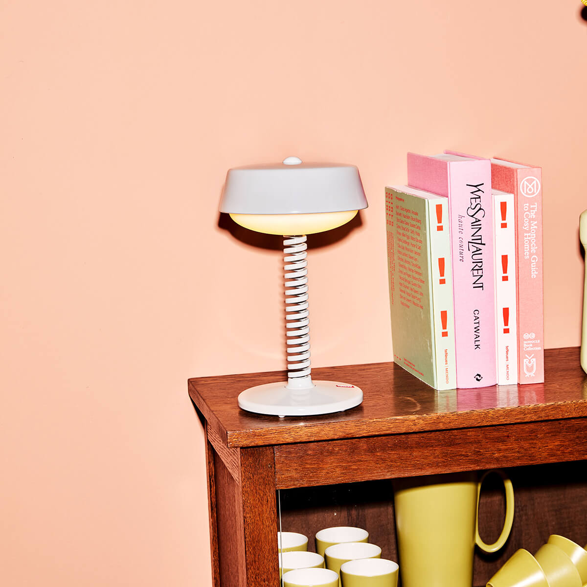 Die kabellose Fatboy Bellboy, deren Name sich von den dienstbeflissenen Pagen der Grandhotels ableitet, begeistert mit ihrem sympathischen Look und der hohen Vielseitigkeit. Ausgestattet mit wiederaufladbaren Li-Ion-Akkus, folgt Ihnen die Leuchte überallhin, um auf Schreibtisch, Kommode und Beistelltisch ein gemütliches Licht zu spenden.