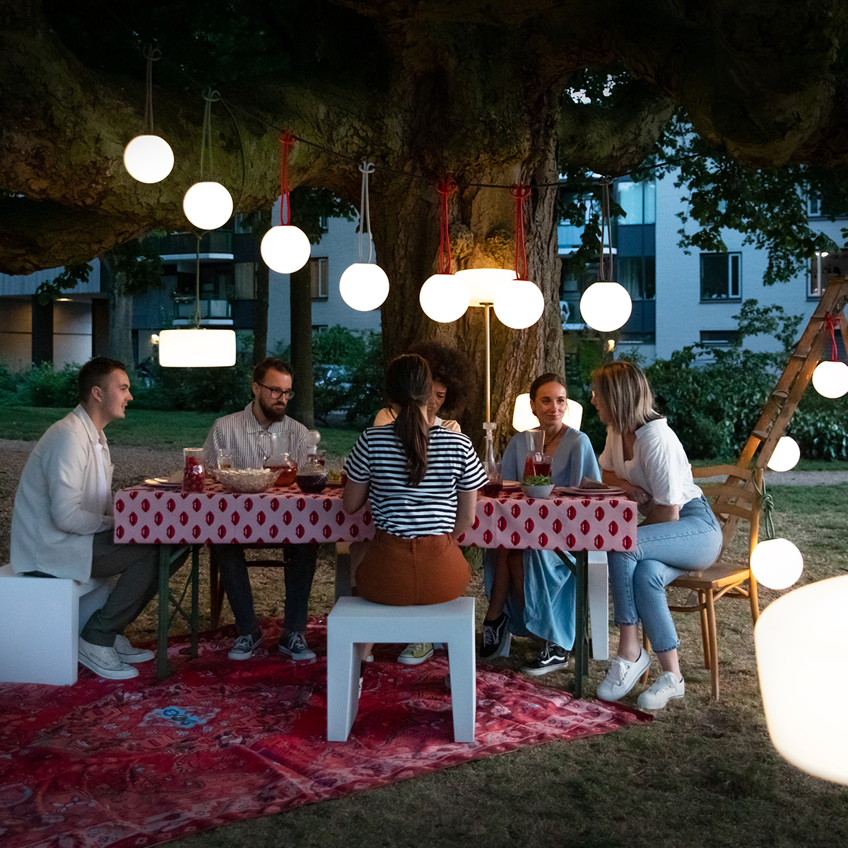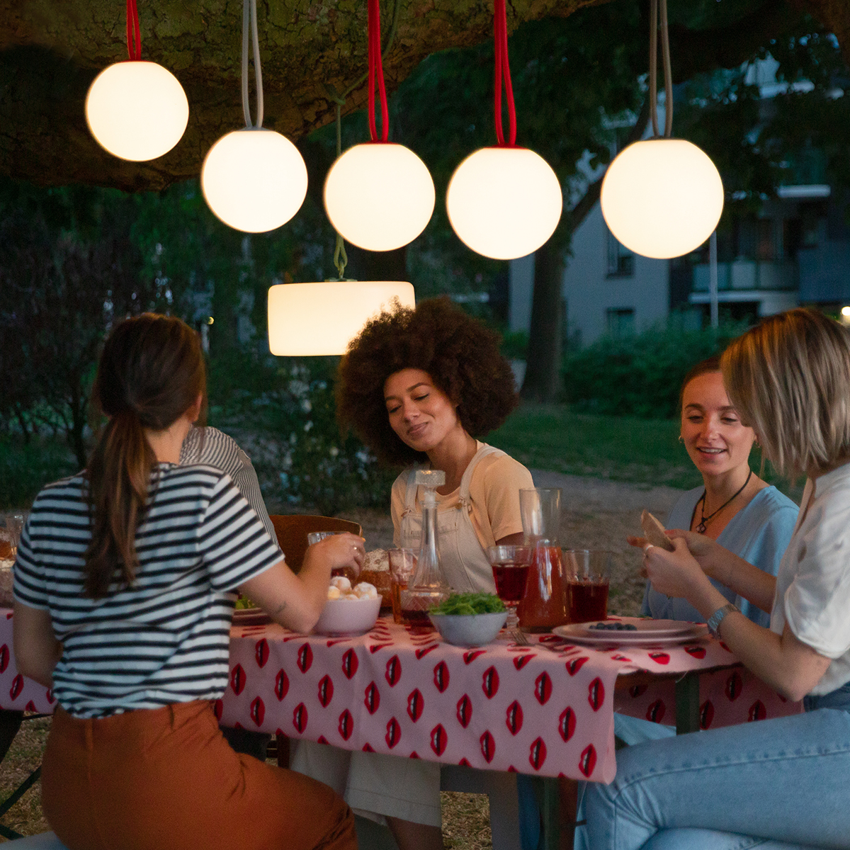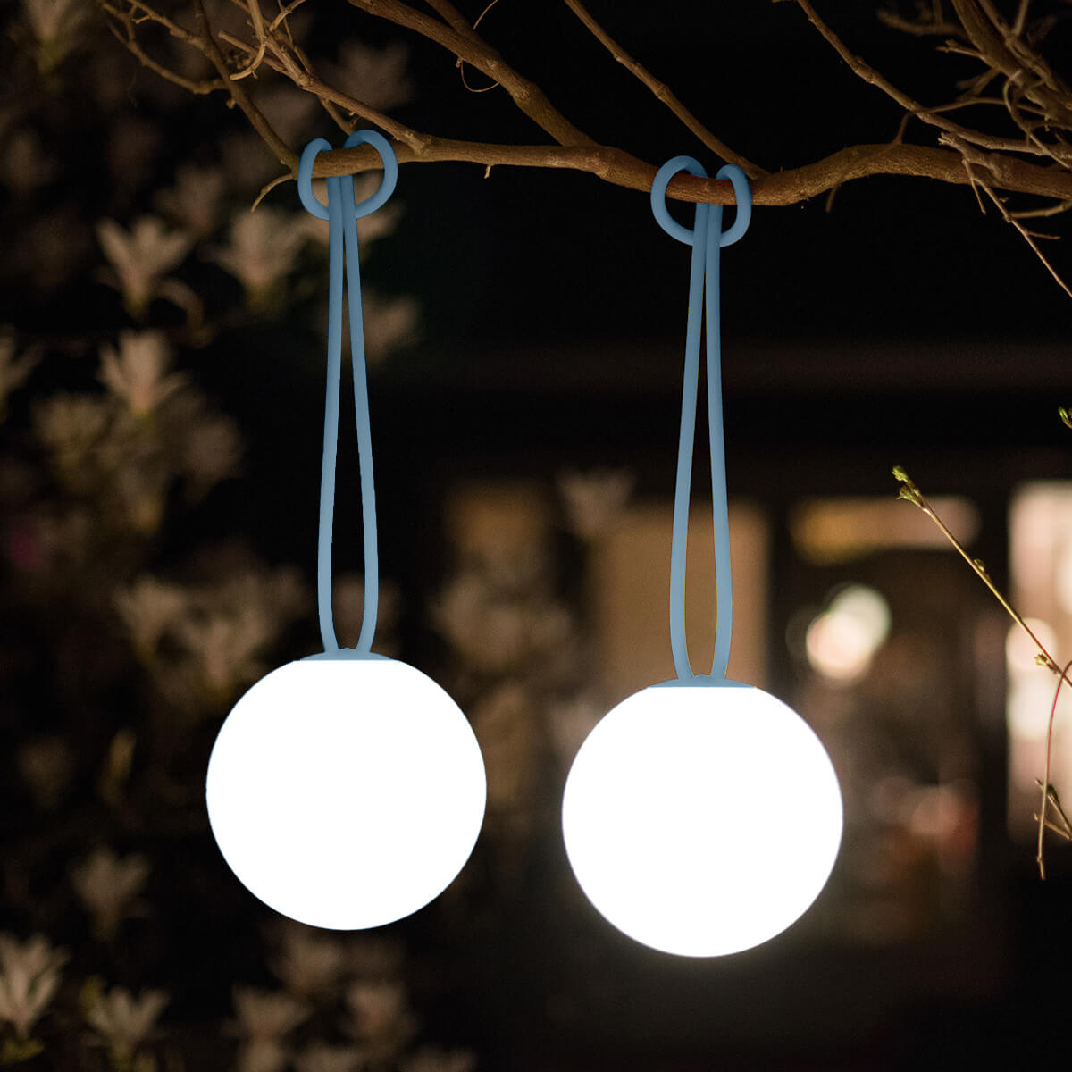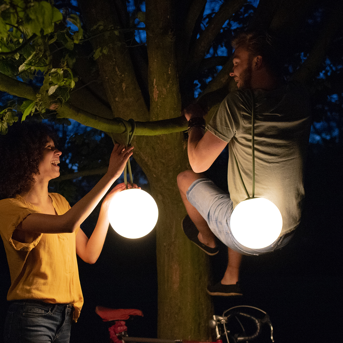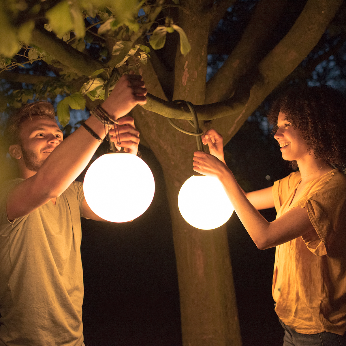 Sichern Sie sich die beliebten Fatboy Bolleke LED-Kugellampen im günstigen 2er-Set! Die kabellosen Pendelleuchten verleihen Ihrem Außenbereich einen originellen Blickpunkt. Dank ihrer flexiblen Schlaufen aus Silikonkautschuk lassen sich die Akkulampen, ähnlich einer Lichterkette oder Laternen, an Zweigen, Sonnenschirmen oder Zeltstangen befestigen – perfekt für fröhliche Gartenpartys oder Outdoor-Dinner auf der Dachterrasse.