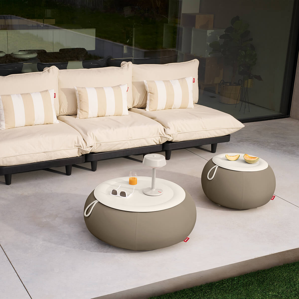Der Dumpty Outdoor Beistelltisch von Fatboy ist die perfekte Ergänzung für Garten, Terrasse und Balkon. Der stilvolle, aufblasbare Couchtisch bietet eine großzügige, runde Abstellfläche für Ihre Getränke und Snacks. Dank seiner stabilen Konstruktion und der Möglichkeit, ihn nach dem Gebrauch platzsparend zu verstauen, vereint er Flexibilität und Design auf ideale, kreative Weise.
