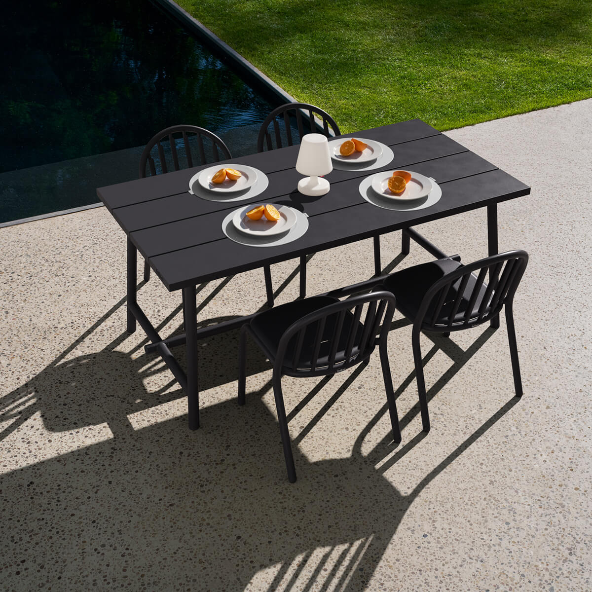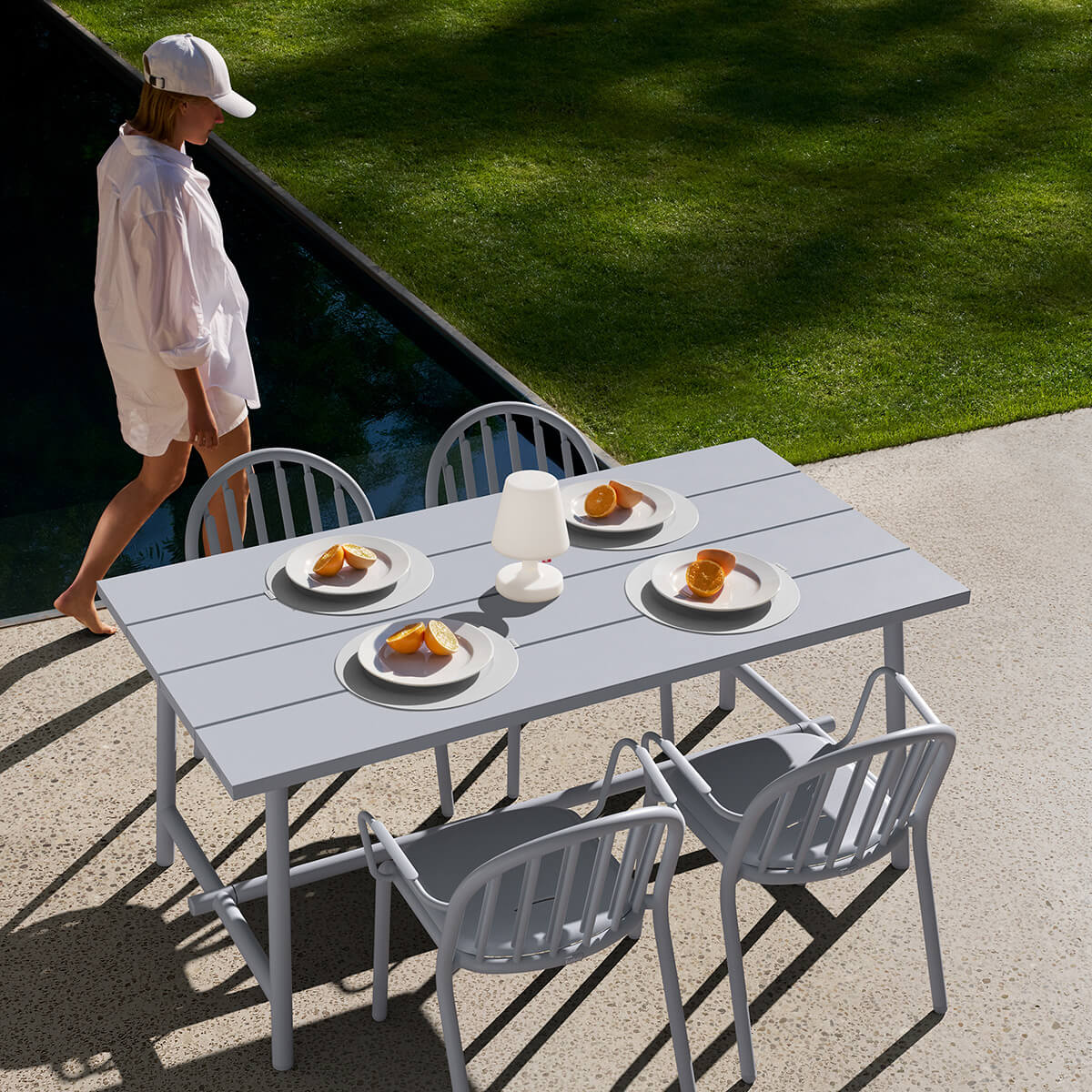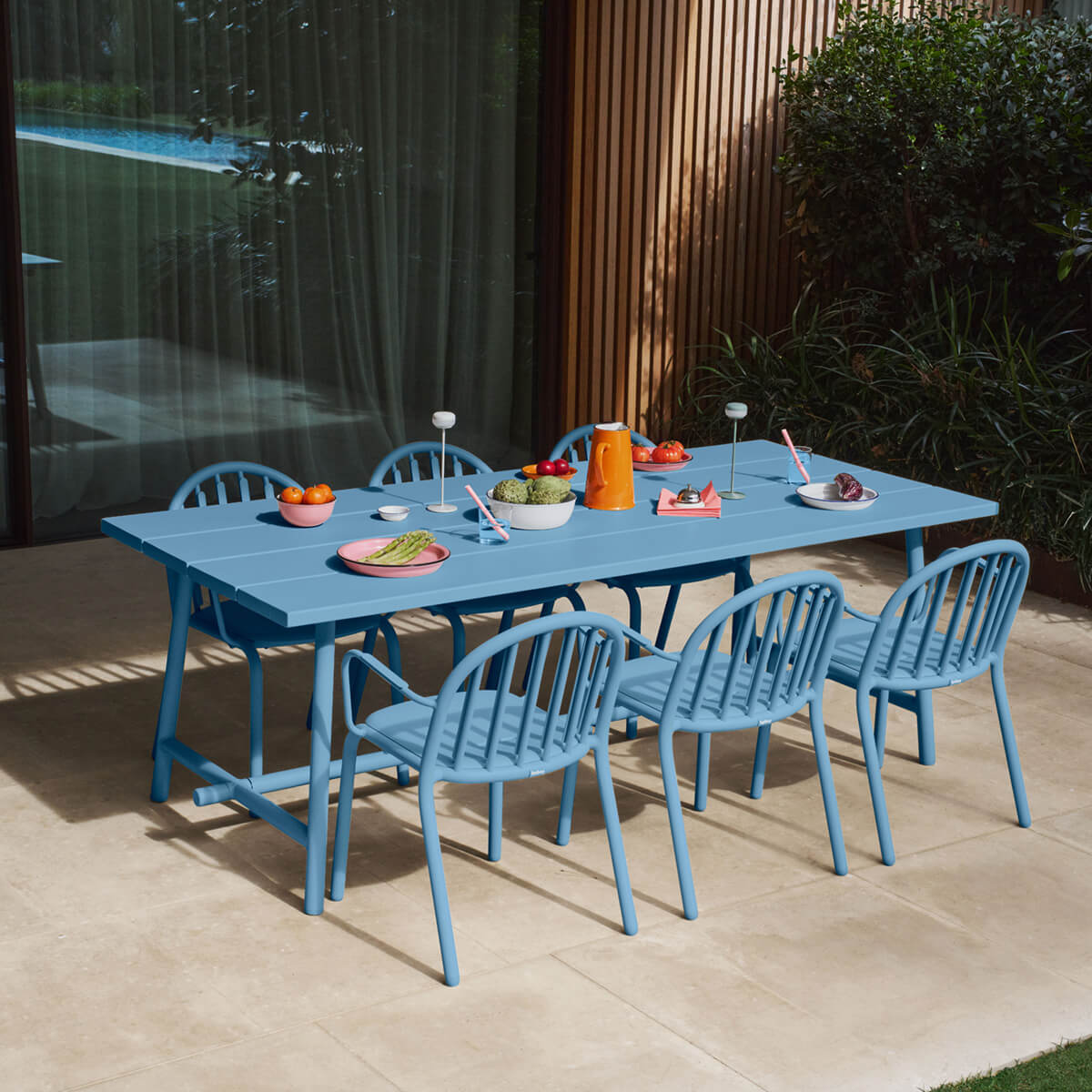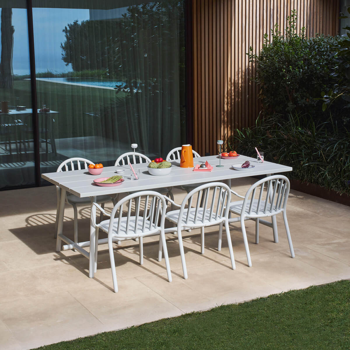 Gefertigt aus wetterfestem Aluminium, ist der Fred’s Armchair robust, langlebig und pflegeleicht. Das Material hält den Anforderungen im Außenbereich zuverlässig stand und bleibt zugleich angenehm leicht in der Anmutung. Die Outdoor-Stühle lassen sich bei Bedarf platzsparend stapeln – bis zu sechs Stück übereinander. Das ist besonders praktisch, wenn Sie flexibel bleiben möchten oder zusätzliche Stühle nur bei Besuch benötigen.