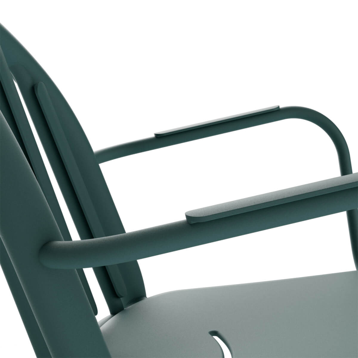 Der Fred’s Armchair greift die vertraute Form klassischer Bistro- und Gartenstühle auf, interpretiert sie jedoch deutlich komfortabler. Die leicht geschwungene Sitzfläche fühlt sich fast wie ein fest integriertes Kissen an und sorgt zusammen mit den Armlehnen für ein besonders angenehmes Sitzgefühl. Dadurch eignet sich der Stuhl nicht nur für einen kurzen Kaffee zwischendurch, sondern auch für längere Mittagessen, ausgedehnte Gespräche und entspannte Sommerabende unter freiem Himmel.